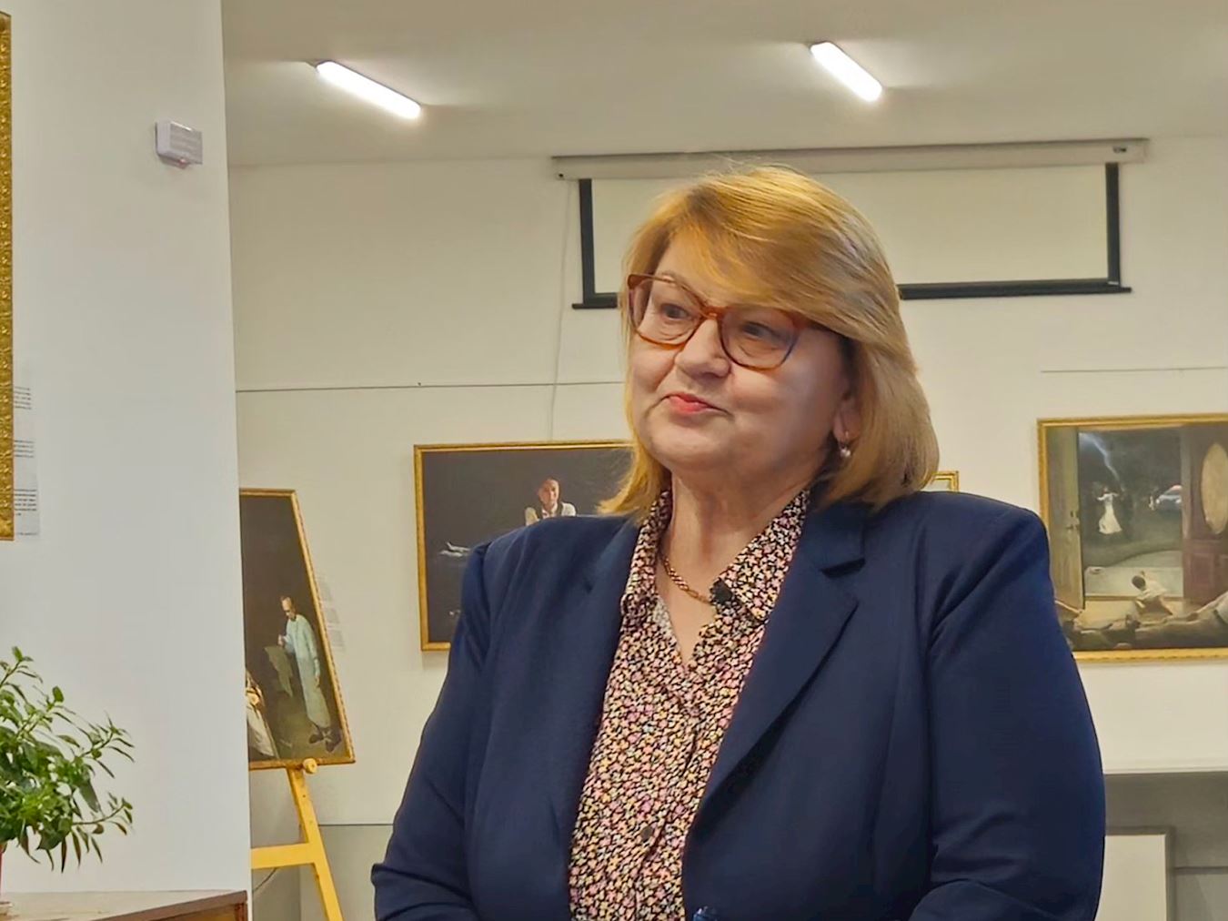 ![]() 图8:画家伊娃利娜·内德娃正在观赏画作。 |