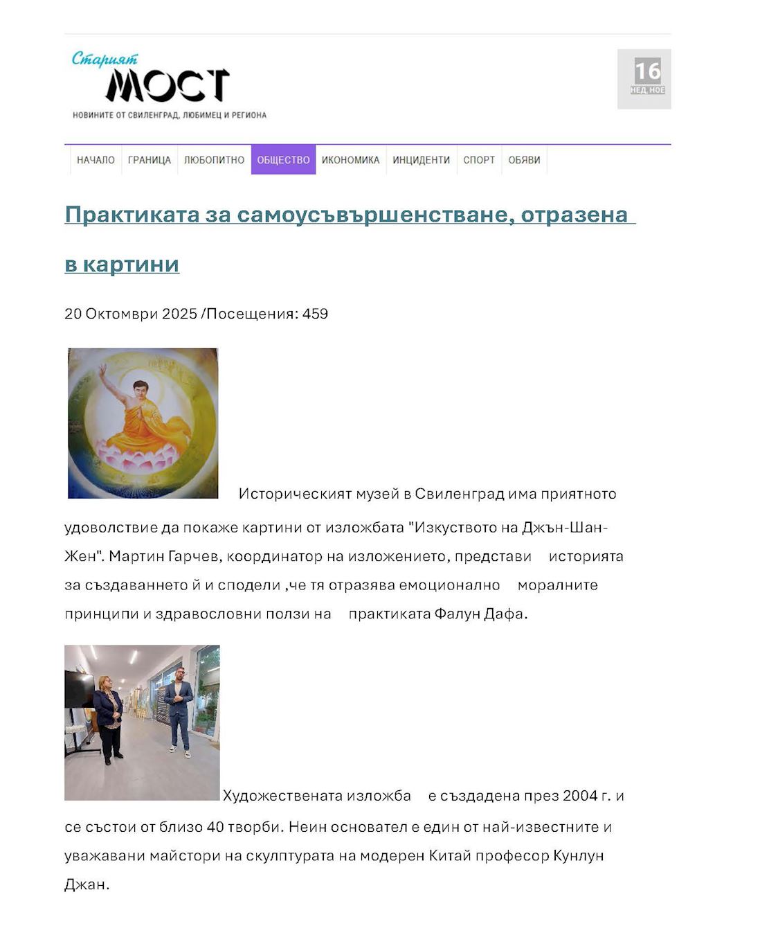 记者克拉拉·梅托季耶娃(Klara Metodieva)参观了画展后表示:“我很高兴通过此次艺术展,使我得以重新接触到法轮大法这一精神修炼功法。”