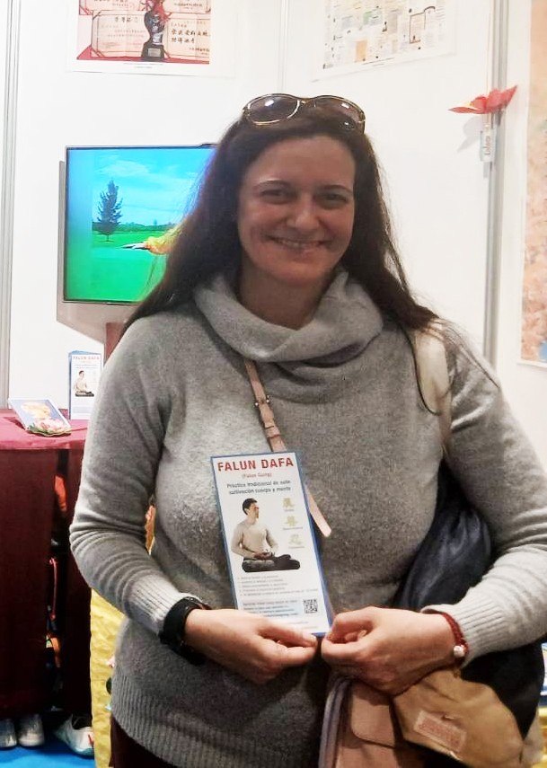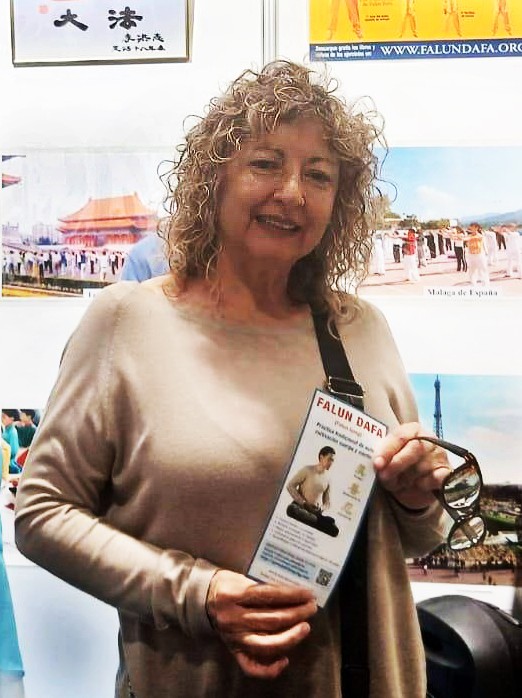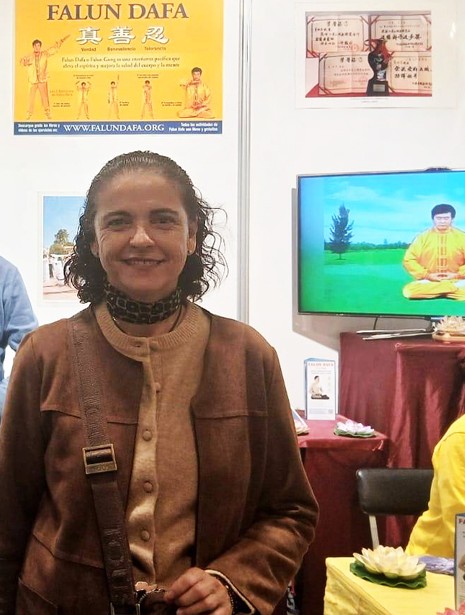 索尔·瓦尔加塞(Sol Valcarcel)是博览会的工作人员。经常经过法轮大法展位,看到法轮功学员演示功法和电视屏幕播放的介绍法轮大法在世界各地弘传的盛况。她对法轮功学员说:真善忍的原理让人们找到内心的平静与安宁,至少我是这么觉得的。当然,因为我们很多人过着另一种生活,而没有思考过这些更重要的原理,而这些原理应该从小在学校里,通过这种修炼或其它任何方式就教导给我们,因为这些原理蕴含着重要的价值观,孩子们可以(秉承这些)长大成人。