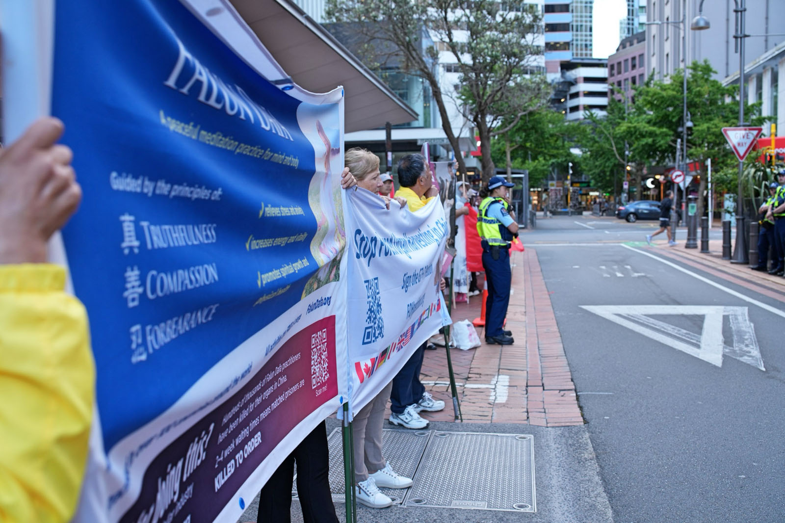 学员们在现场安静和平、向路人和媒体递送真相资料,并向新西兰政府表达诉求,希望政府能够关注中共迫害法轮功真相,并依据《马格尼茨基法案》等国际人权机制,对参与迫害的中国官员实施入境限制和冻结资产等制裁措施。他们表示,新西兰作为重视法治与人权的国家,应该在国际社会中发挥道义影响力,为制止迫害发声。