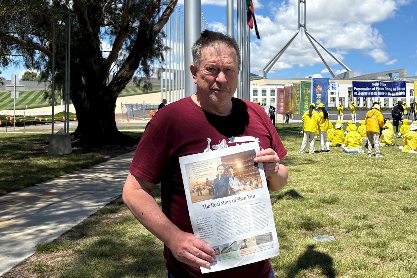 堪培拉居民、退休公务员大卫(David)很钦佩法轮功学员在抗议活动中展现的理性与和平,“法轮功在抗议中表现很出色,我的意思是,看到中共的代表(迫害责任人)来到这里,一定很难过。但活动中表现得非常好,进行了一场非常和平的抗议活动。“