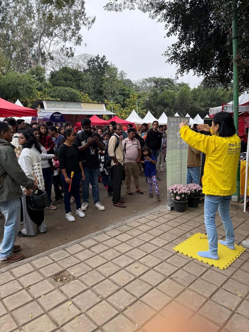 桑托什(Santhosh)在法轮功学员的展位前停下了脚步,他肯定了学员们的做法,认为很有意义。他说:“你们所做的是伟大的善举。”他对学员们所秉持的高尚的道德标准表示敬佩。