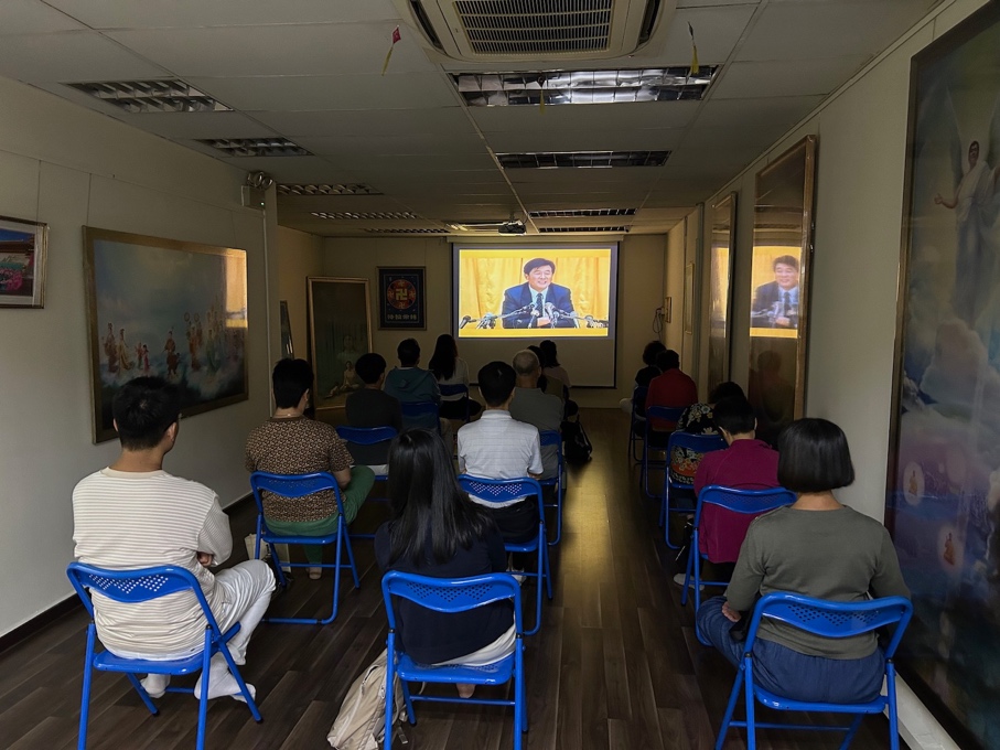 ![]() 图1:二零二五年十二月六日至十四日,新加坡法轮大法佛学会举办九天班,新学员们在观看法轮大法创始人李洪志先生的讲法录像。 |
