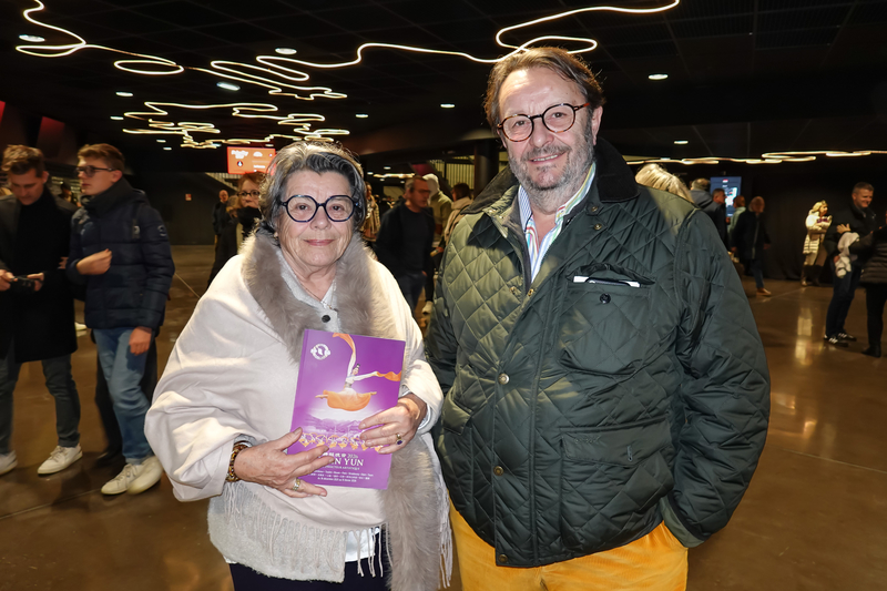 图15:二零二五年十二月十九日下午,法国哲学教授夏尔-埃里克·德·圣日耳曼(Charles-Éric de Saint-Germain)和太太娜塔莉娅·冈察洛娃(Nathalia Goncharova)在阿姆内维尔观赏了神韵演出。(大纪元)