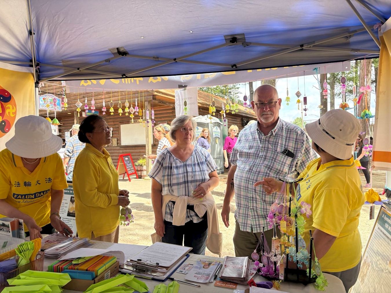 当地的法轮功学员在活动中连续五天设置了法轮大法真相展位,在展位上摆放了展板,向人介绍法轮功,展示舒缓祥和的法轮功功法,派发传单并征集签名支持《法轮功保护法案》。法轮功摊位不仅吸引了当地民众和游客,也同时受到了活动中的摊主和活动主办方的工作人员的关注。