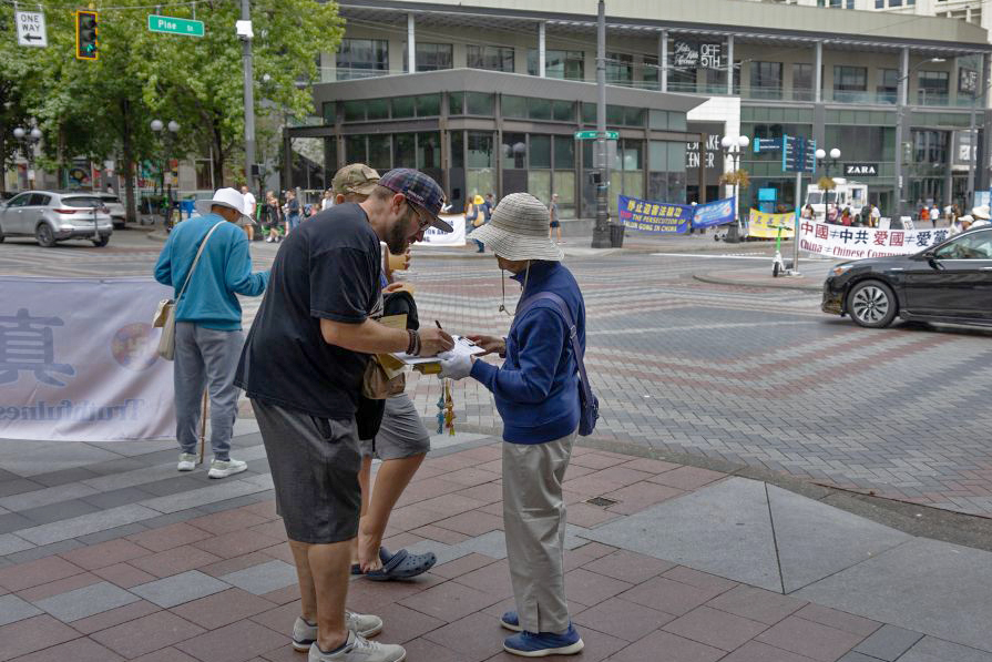 许多了解情况的路人纷纷在反迫害征签表上签名表示支持。一些人甚至主动提出捐款或送饮料,但学员们婉拒,表示他们的行动纯粹是为了传播真相。西雅图市民张先生表示:“我很佩服你们的坚持,感谢你们让大家知道这些事情,请继续下去!”
