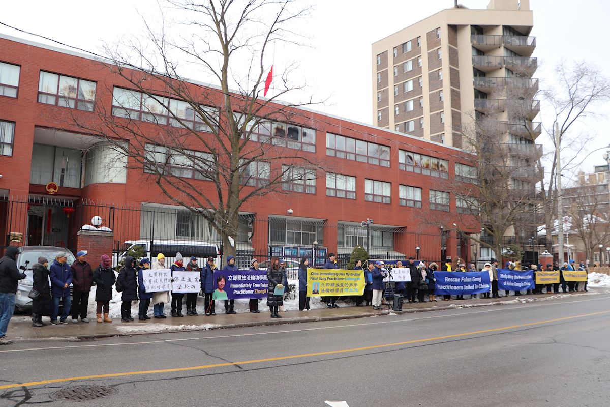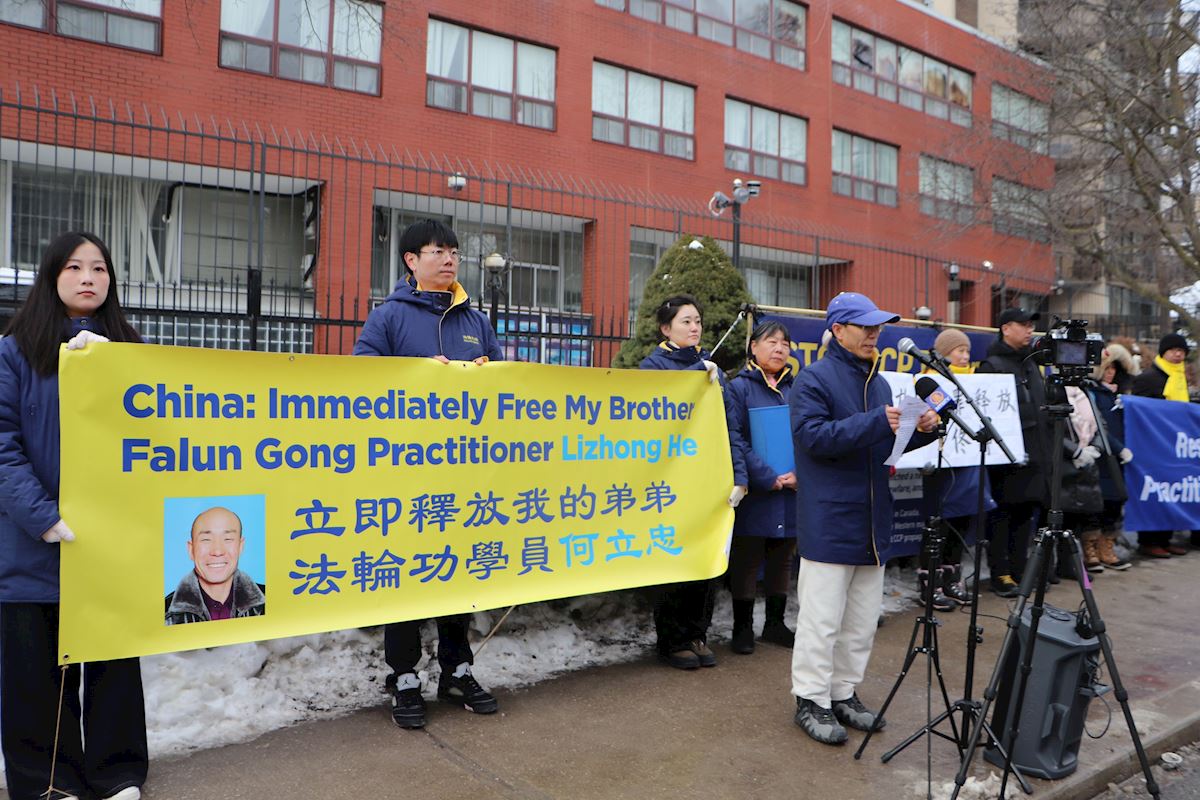在中国新年即将来临之际,法轮功学员何先生再次来到中国驻多伦多领馆前,强烈抗议中共当局对其弟弟——甘肃省民勤县法轮功学员何立忠的迫害与非法监禁,并呼吁当局立即停止迫害、无条件释放何立忠。