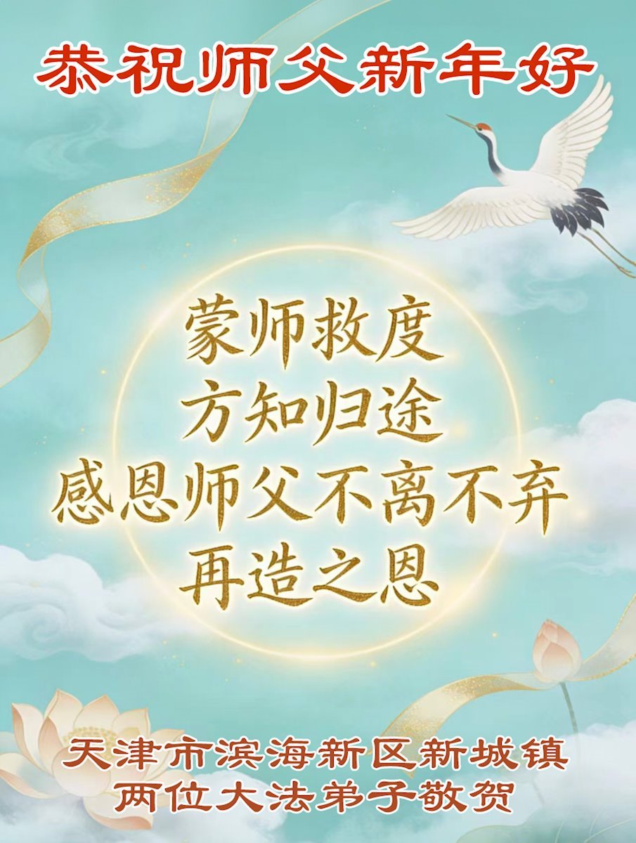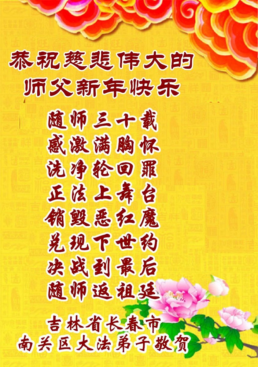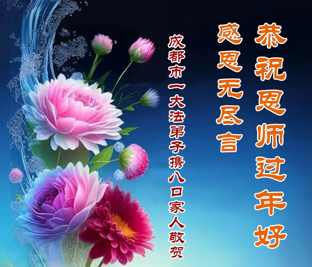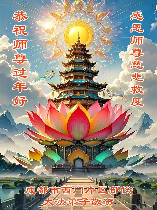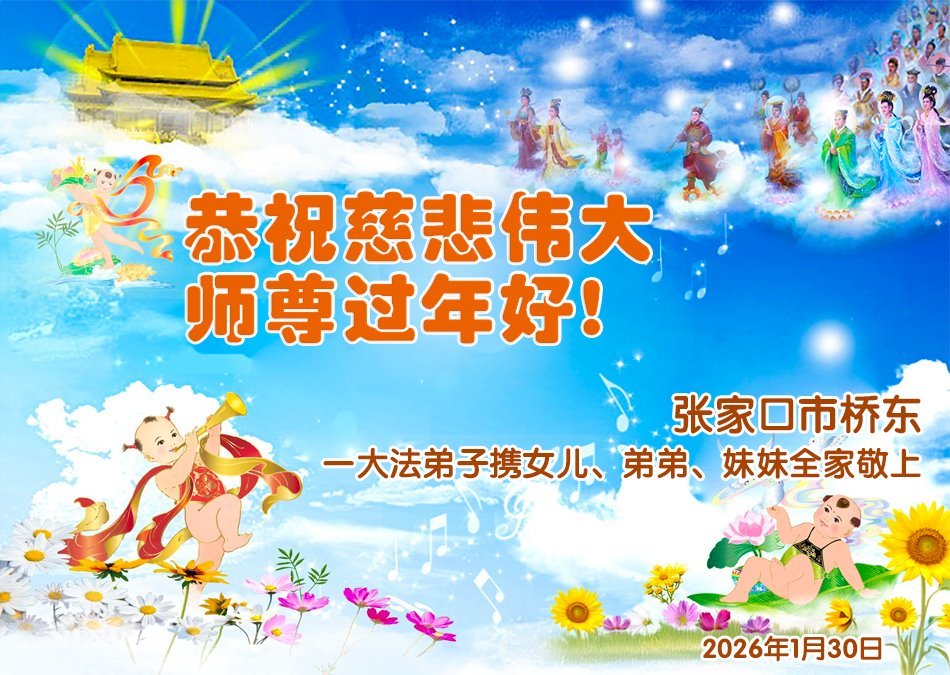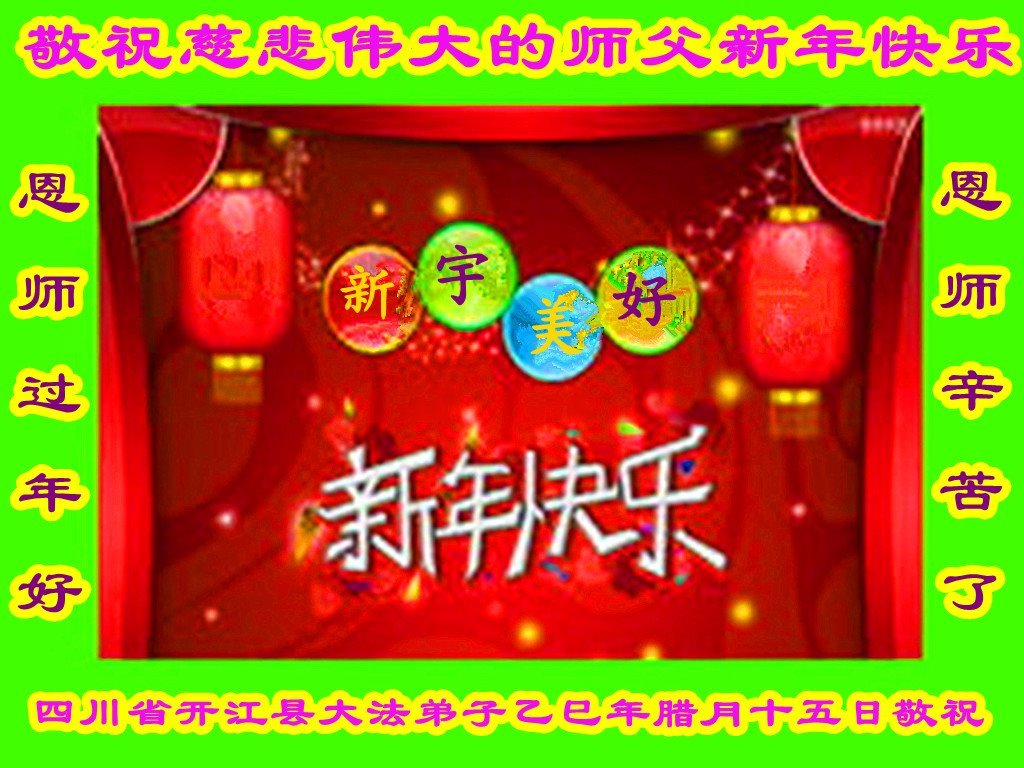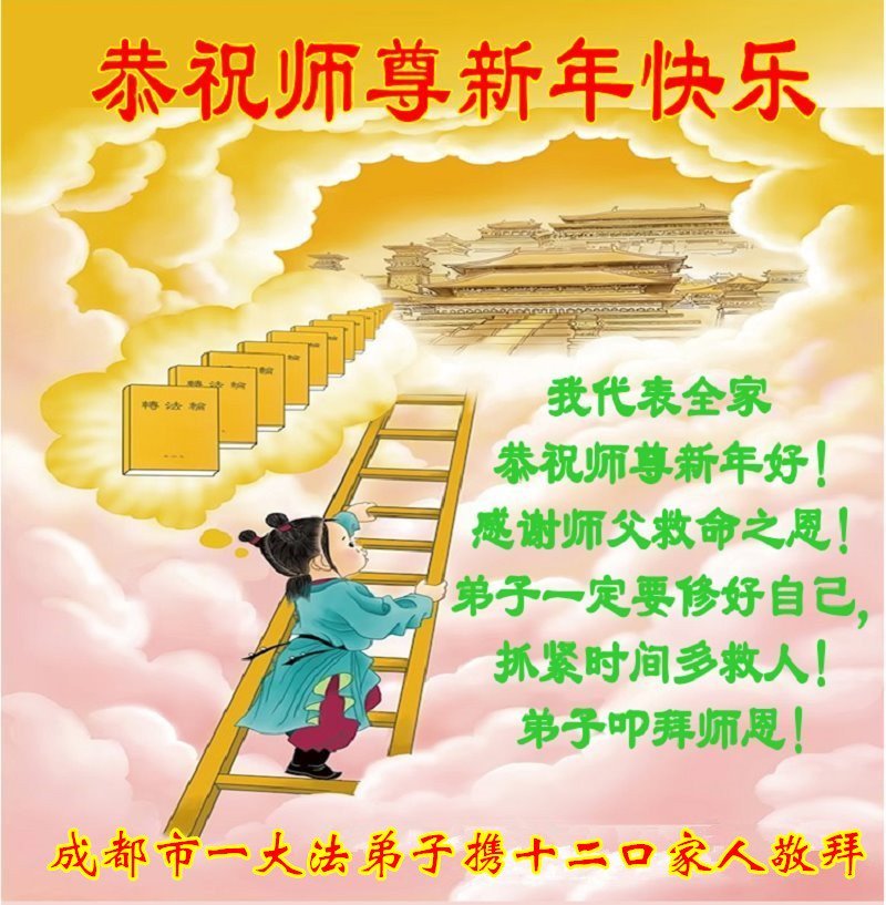 恭祝师父新年快乐!感恩师父的慈悲苦度,不论多难我们一定做好三件事,坚信师父,跟师父回家。谢谢师父对我们的不离不弃和看护,保护我们和我们家人的安全。法轮大法好,真善忍好。