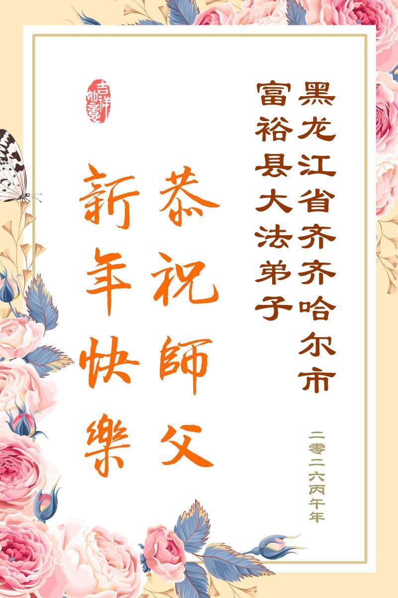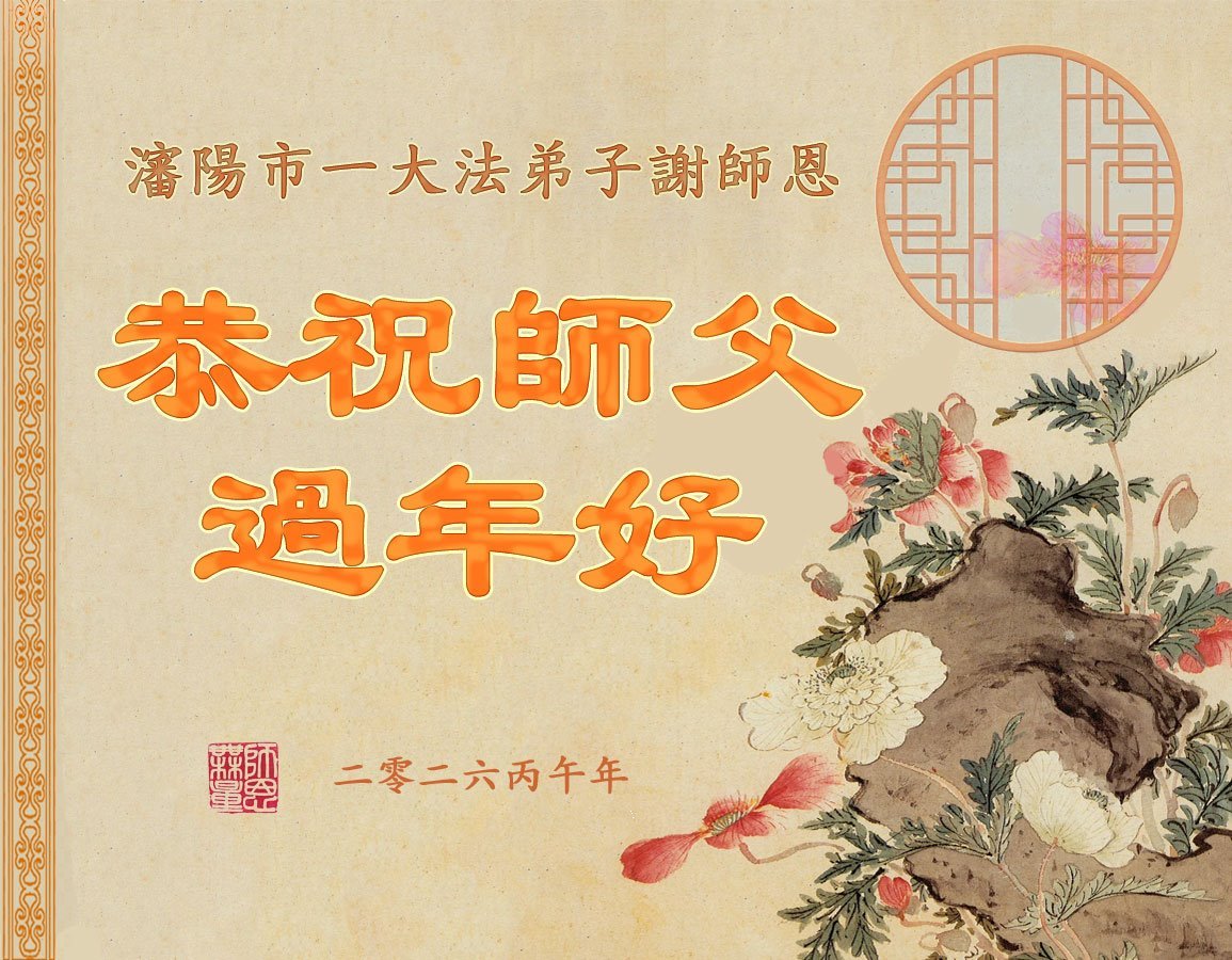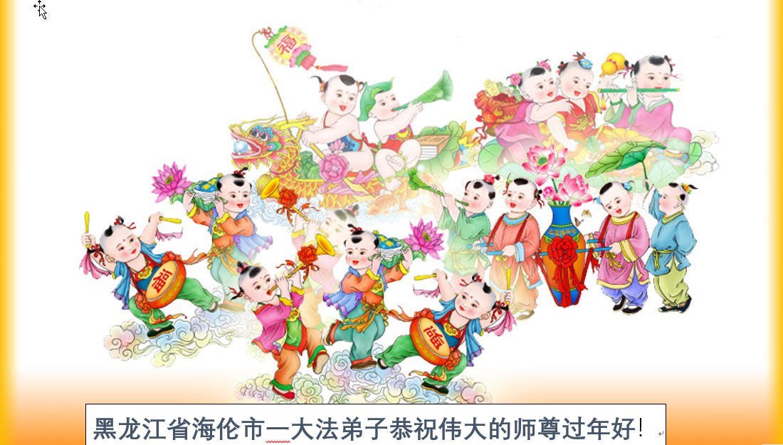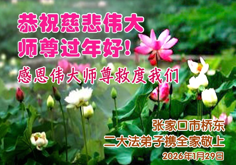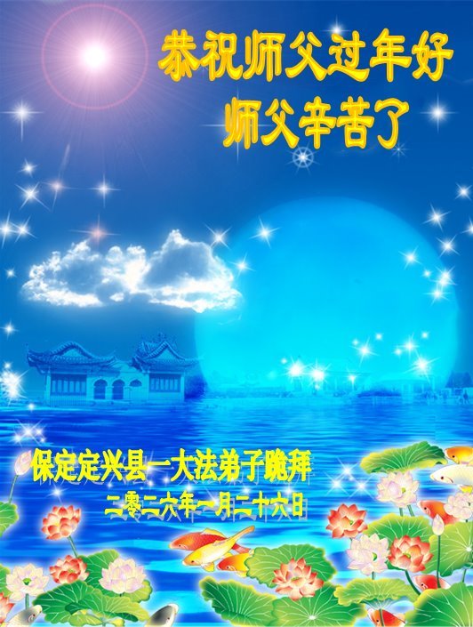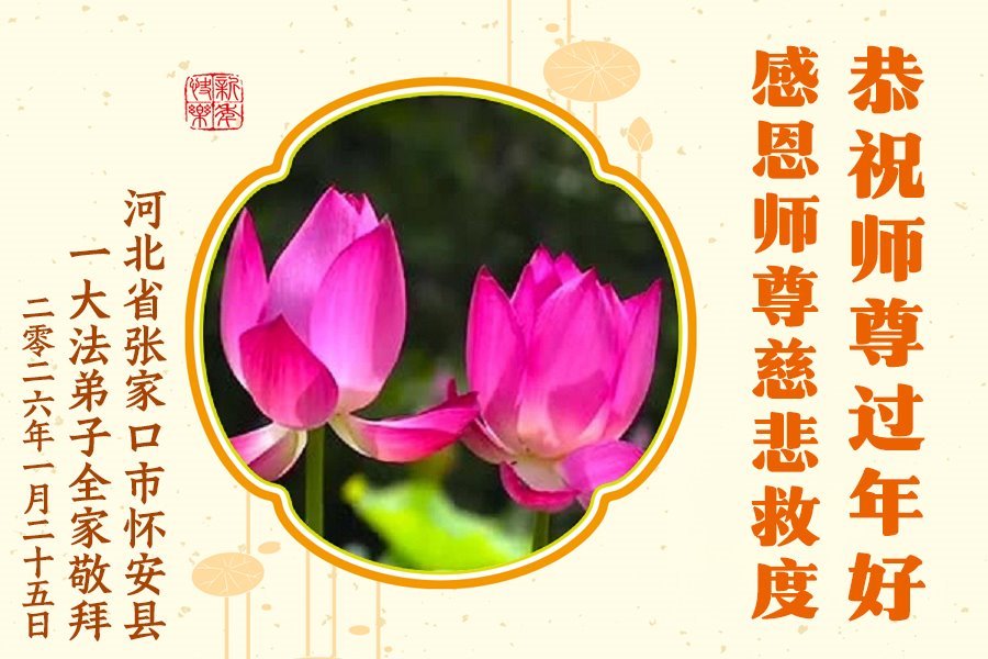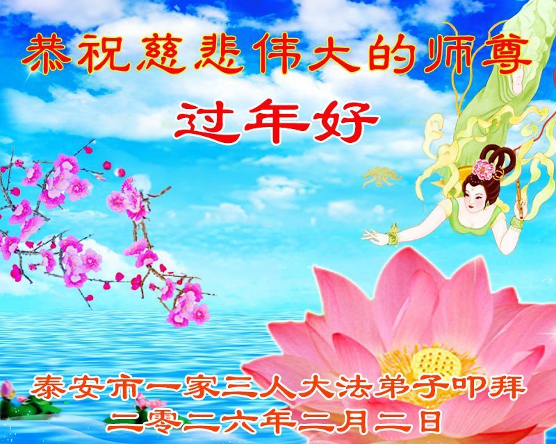 恭祝师父新年快乐!感恩师父的慈悲苦度,不论多难我们一定做好三件事,坚信师父,跟师父回家。谢谢师父对我们的不离不弃和看护,保护我们和我们家人的安全。法轮大法好,真善忍好。