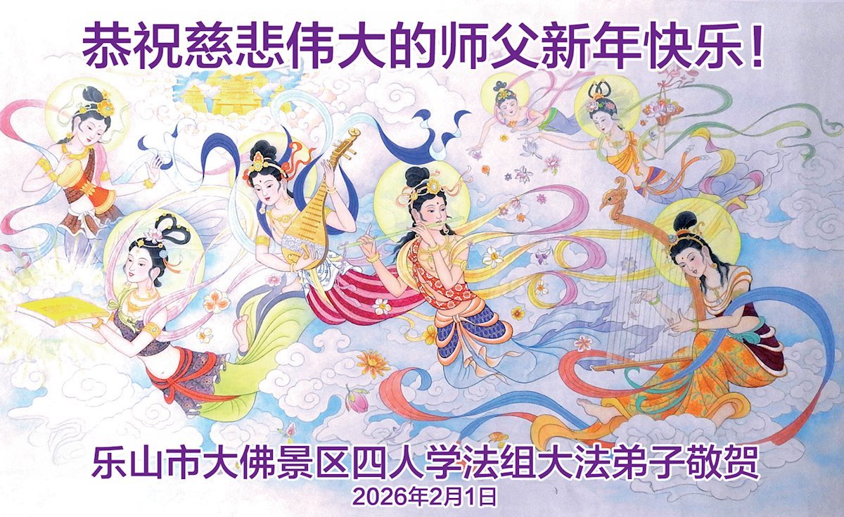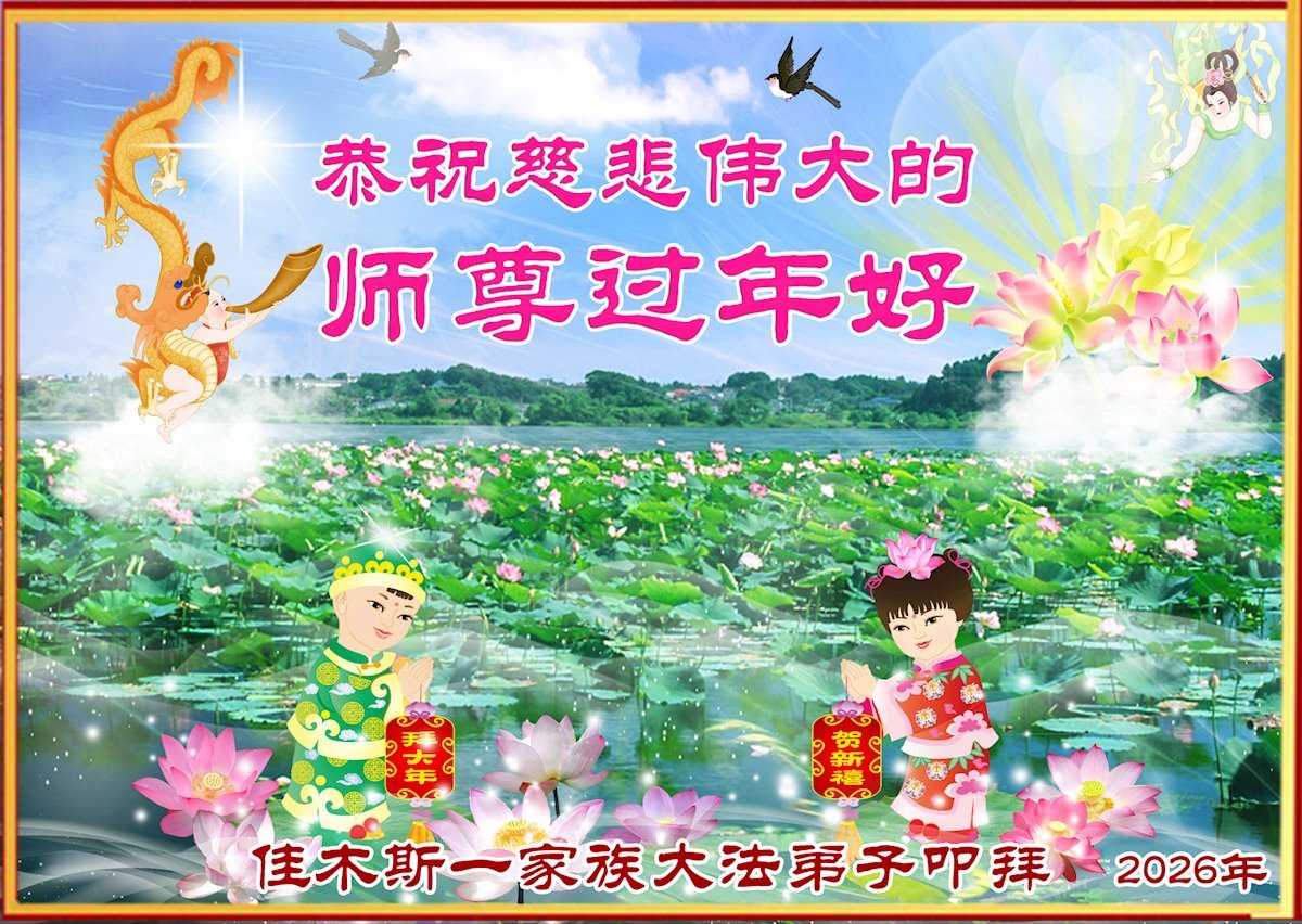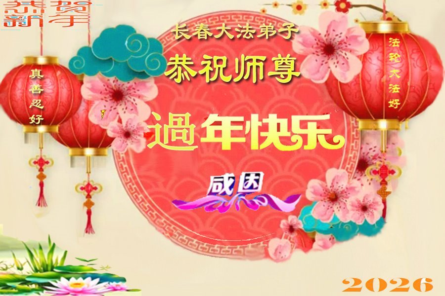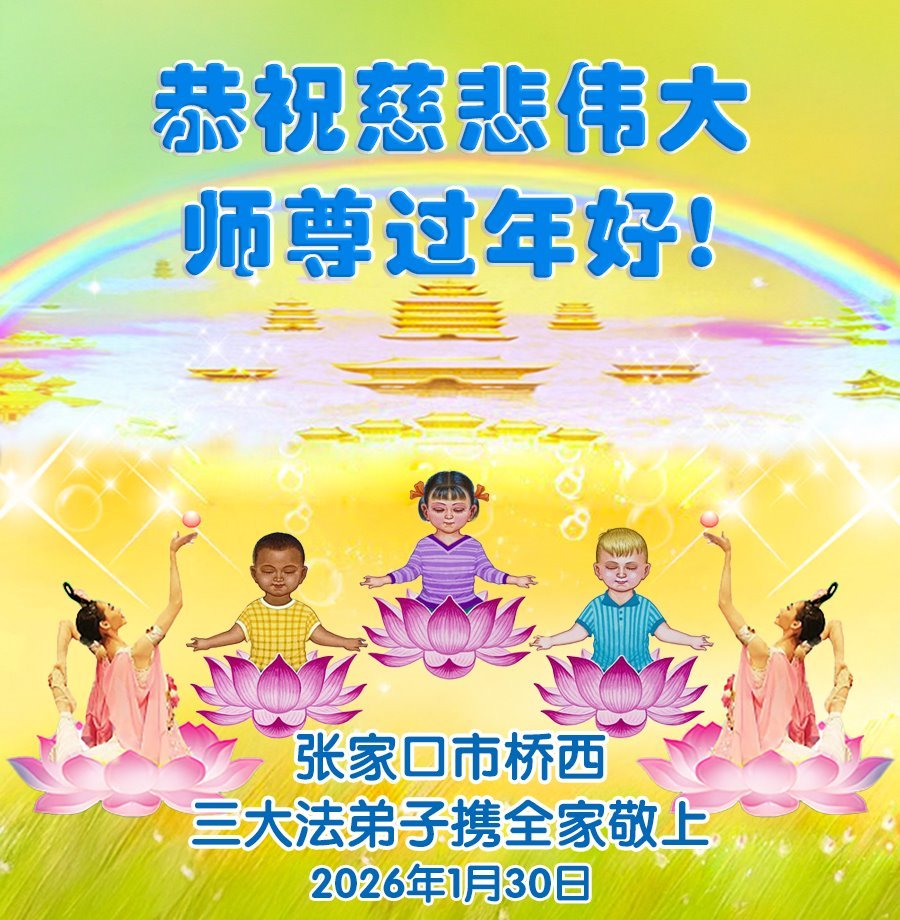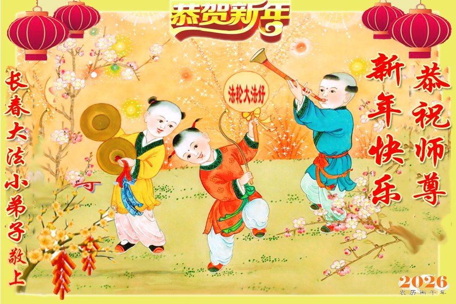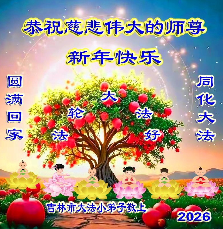师尊新年好!2026新年到,大法在救人,是师尊在导航!弟子们唯有精進实修,修去人心,修去执著,跟着师尊救更多的人。在此,我们全体弟子向师尊合十,恭贺师尊新年快乐!