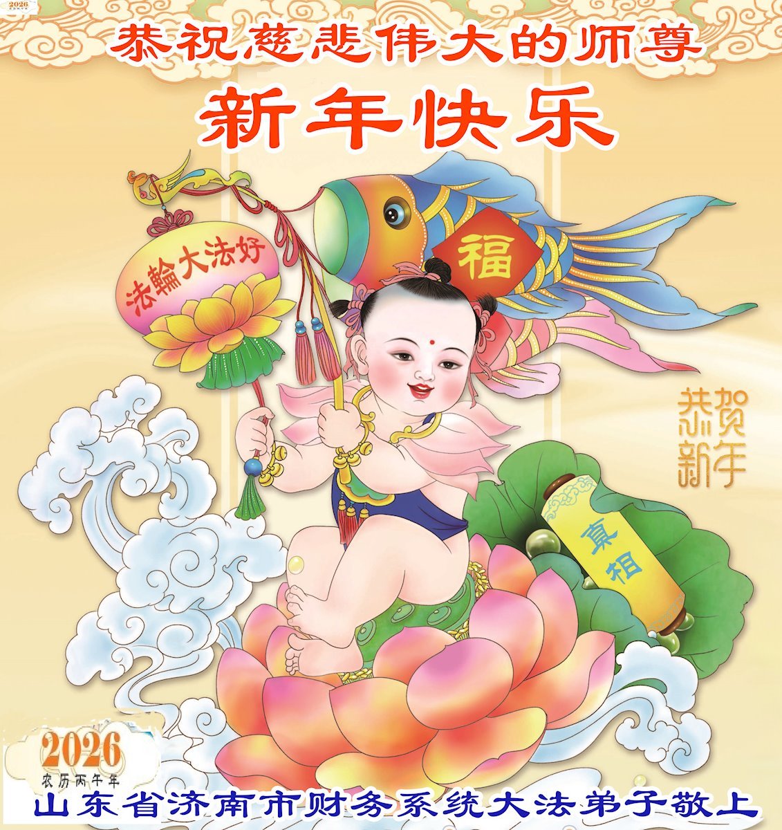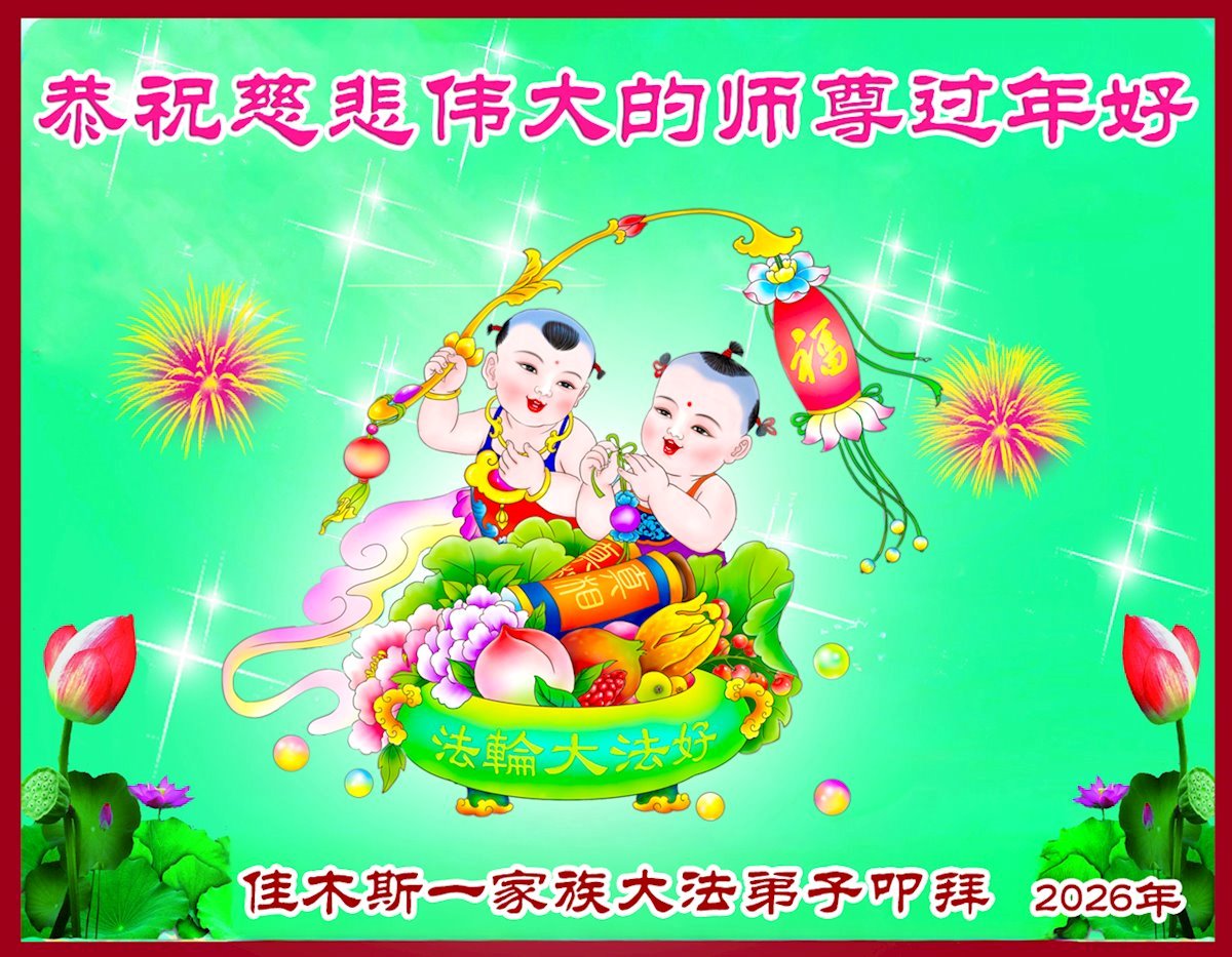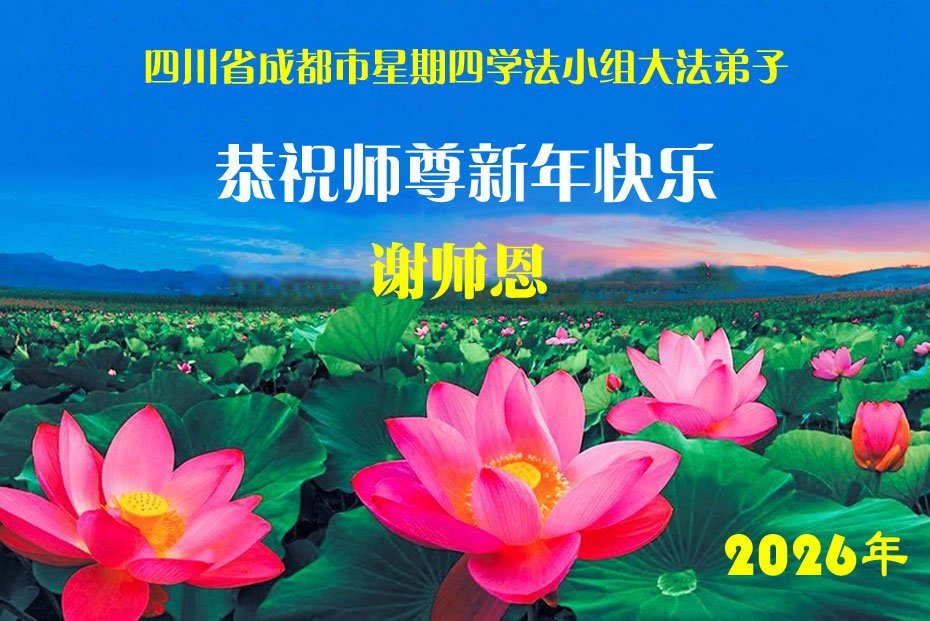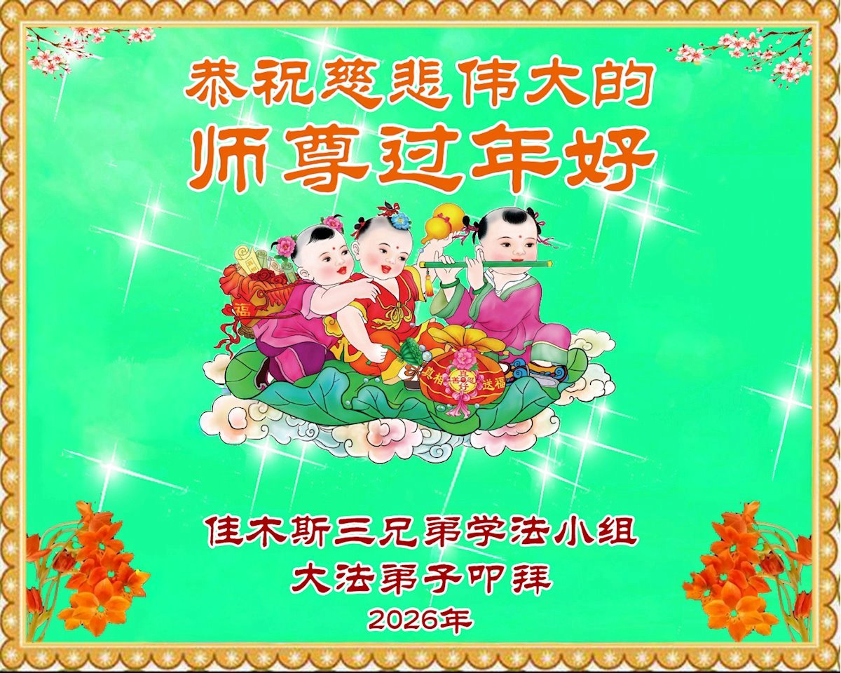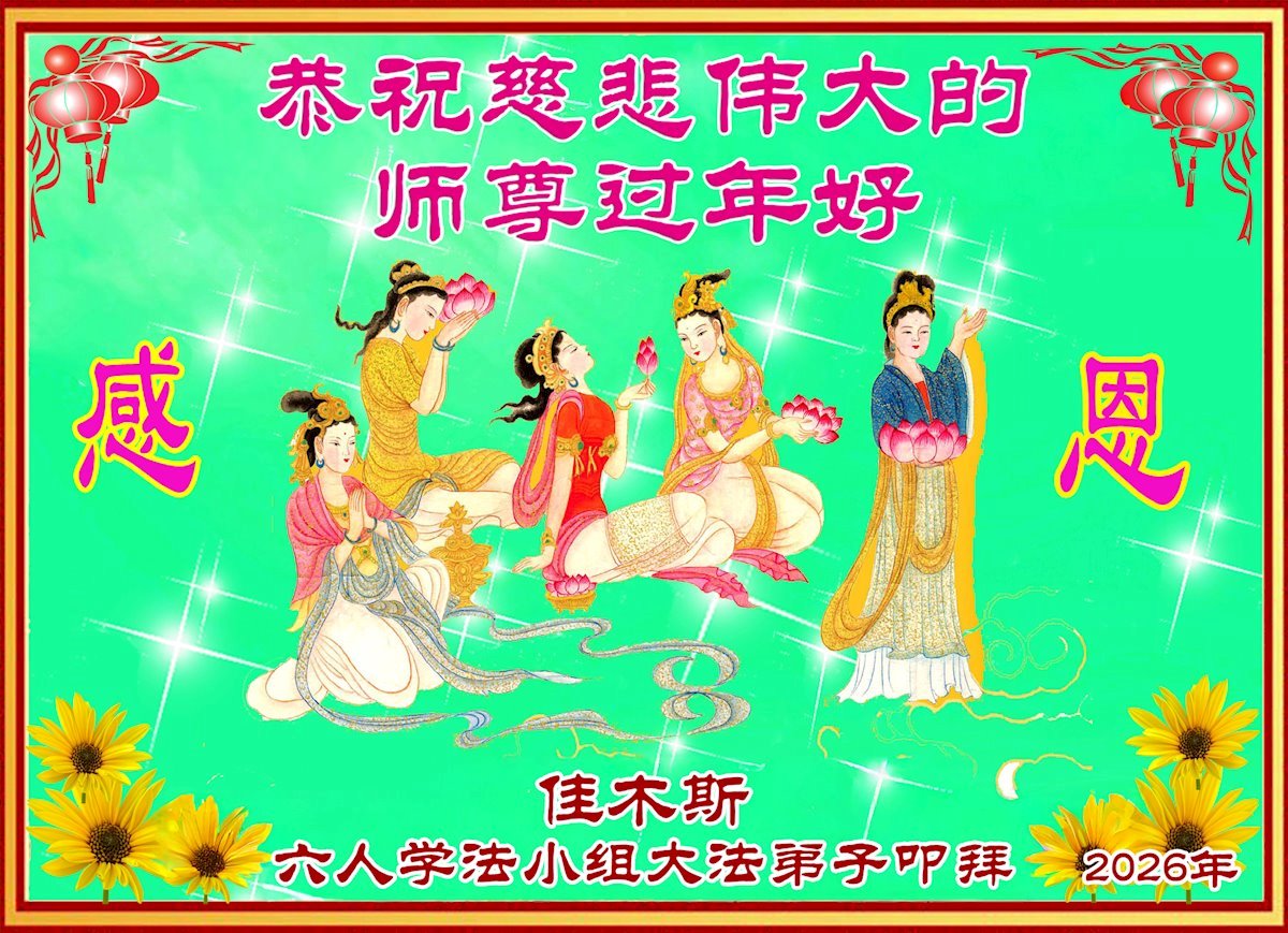 师尊新年好!2026新年到,大法在救人,是师尊在导航!弟子们唯有精進实修,修去人心,修去执著,跟着师尊救更多的人。在此,我们全体弟子向师尊合十,恭贺师尊新年快乐!