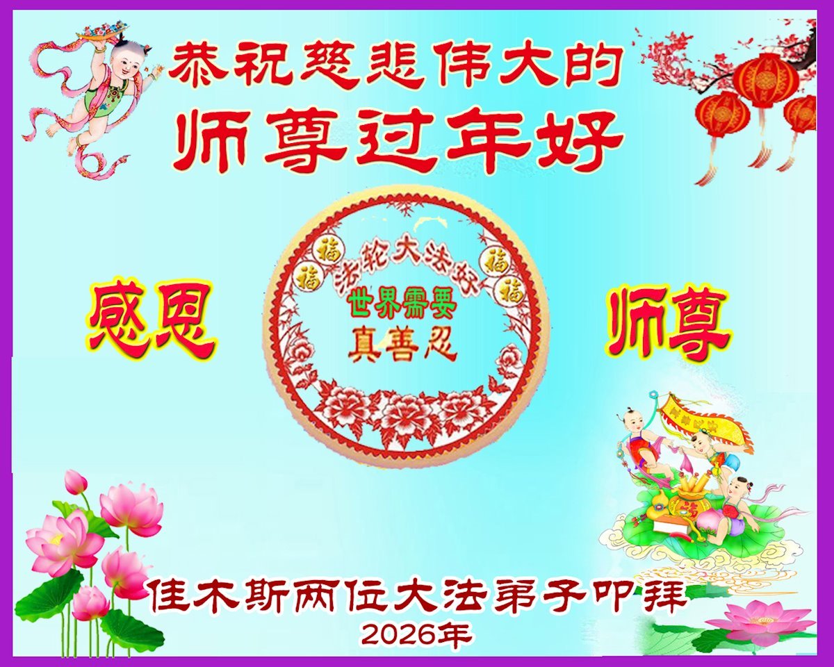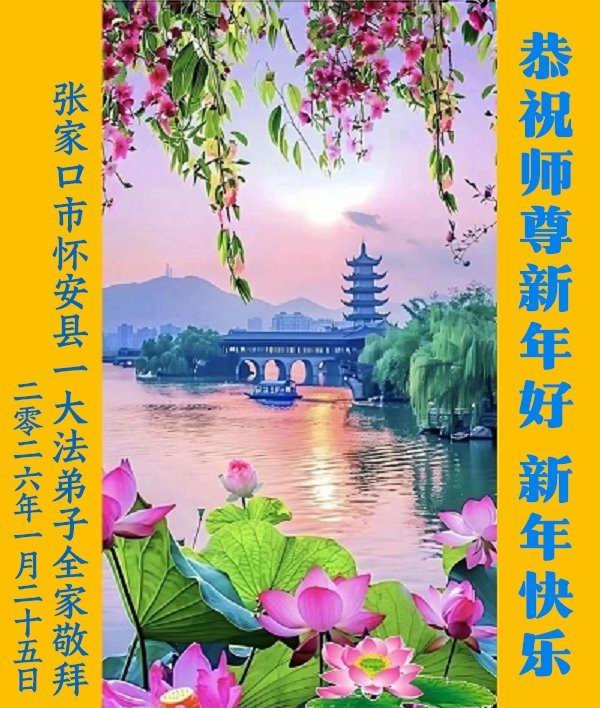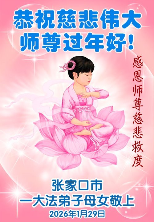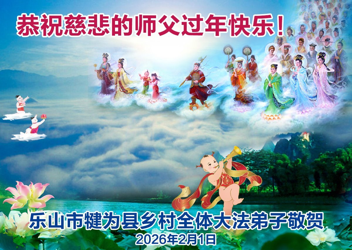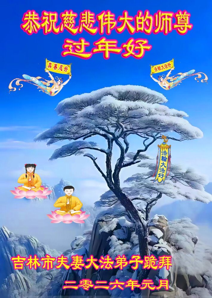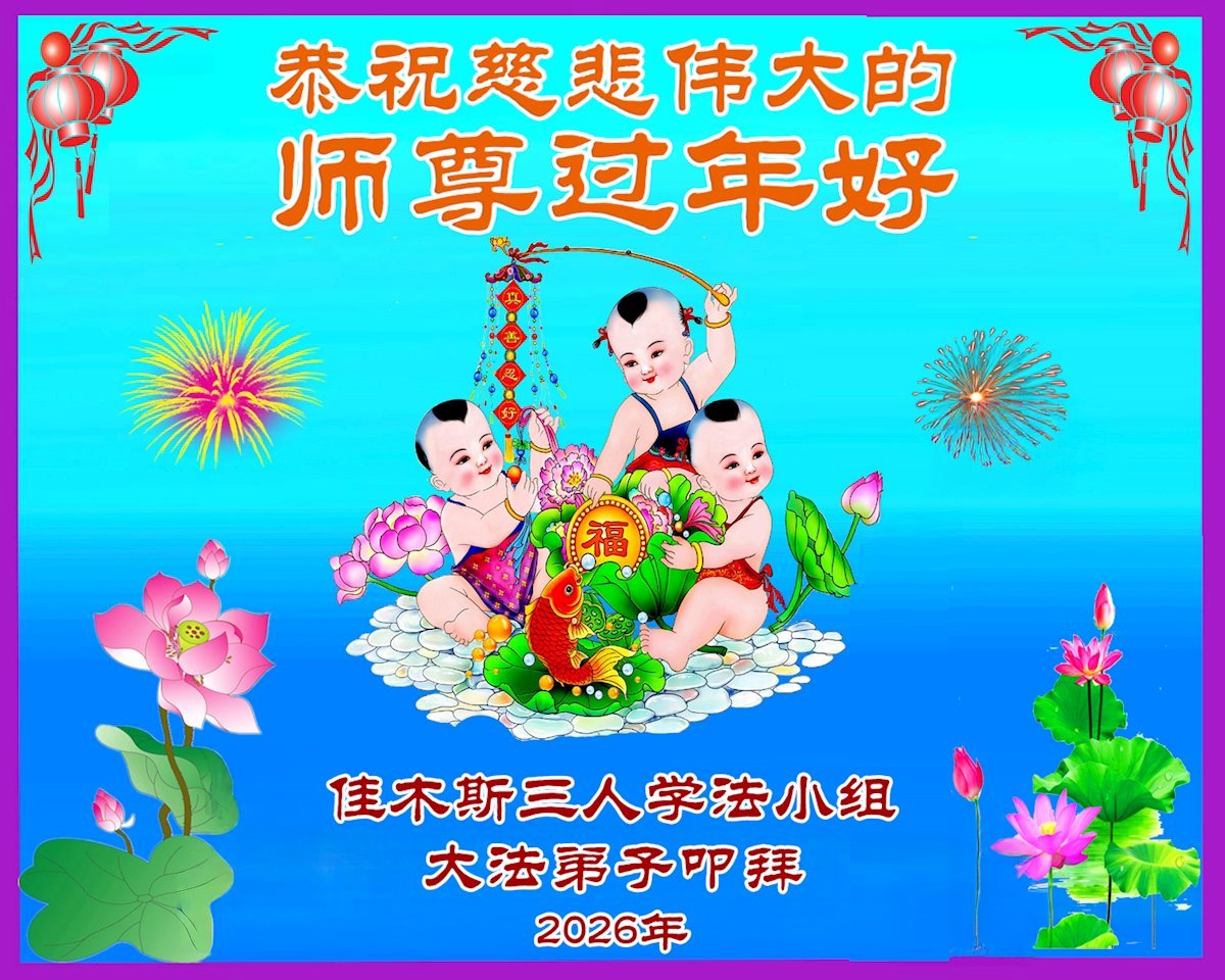 师尊新年好!2026新年到,大法在救人,是师尊在导航!弟子们唯有精進实修,修去人心,修去执著,跟着师尊救更多的人。在此,我们全体弟子向师尊合十,恭贺师尊新年快乐!