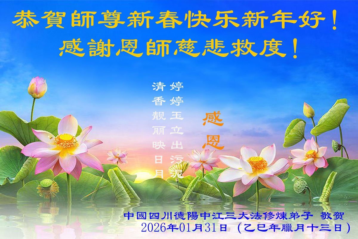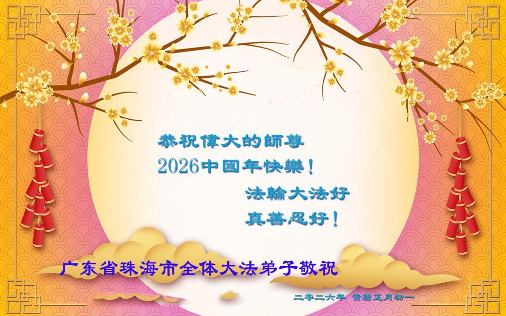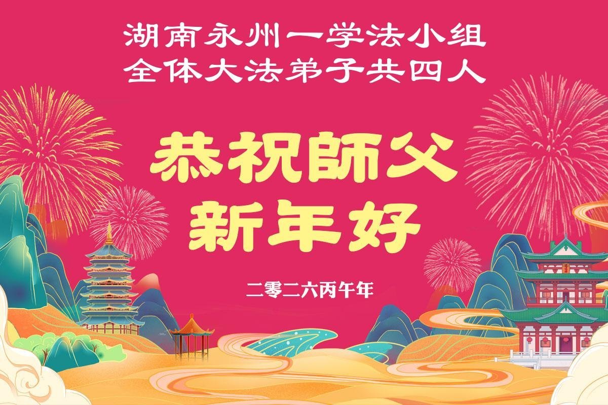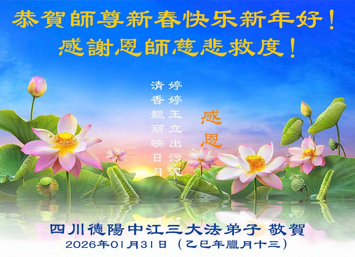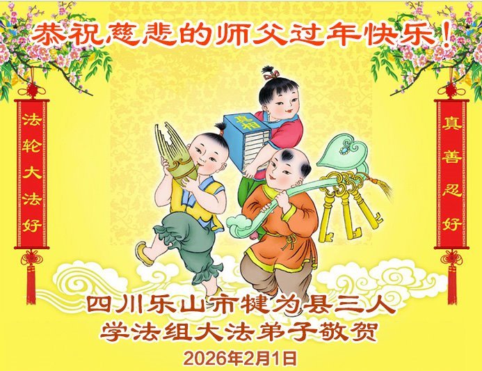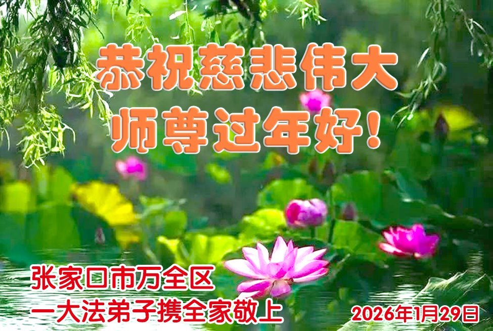 师尊新年好!2026新年到,大法在救人,是师尊在导航!弟子们唯有精進实修,修去人心,修去执著,跟着师尊救更多的人。在此,我们全体弟子向师尊合十,恭贺师尊新年快乐!