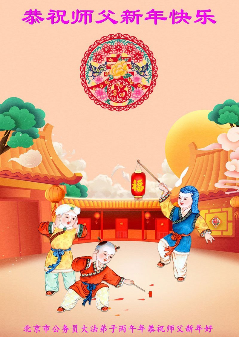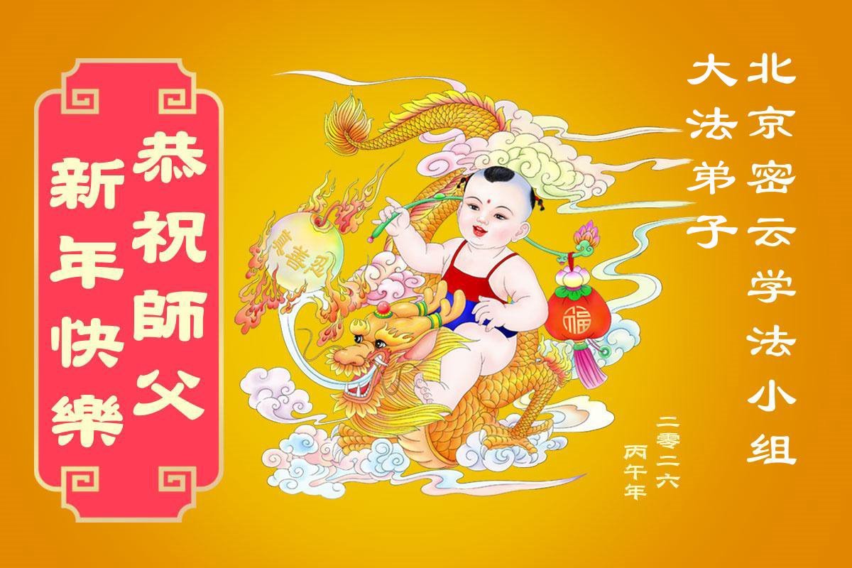 值此丙午年来临之际,北京外交系统大法弟子给慈悲伟大的师尊拜年,恭祝师尊新年快乐!惟愿师尊笑!合十