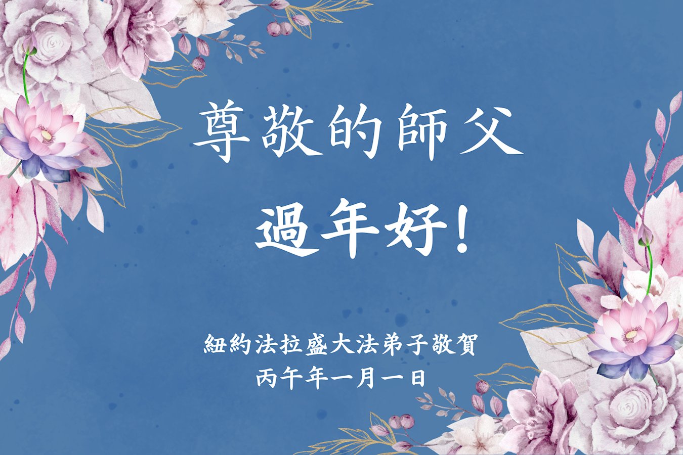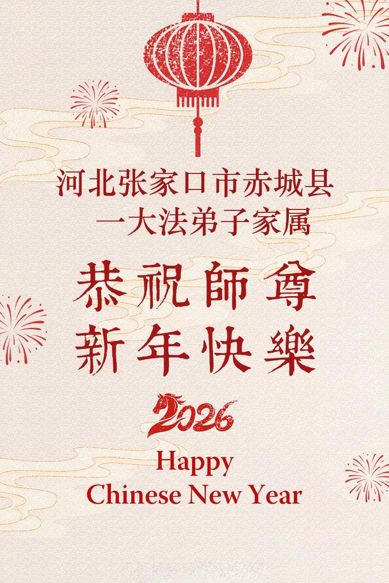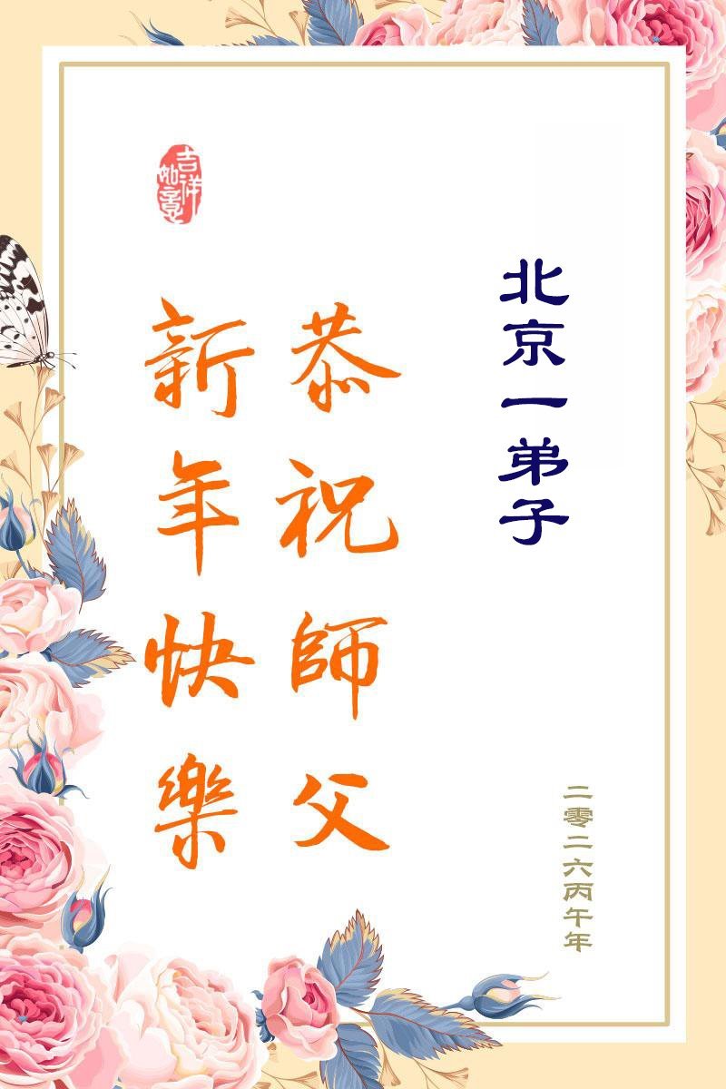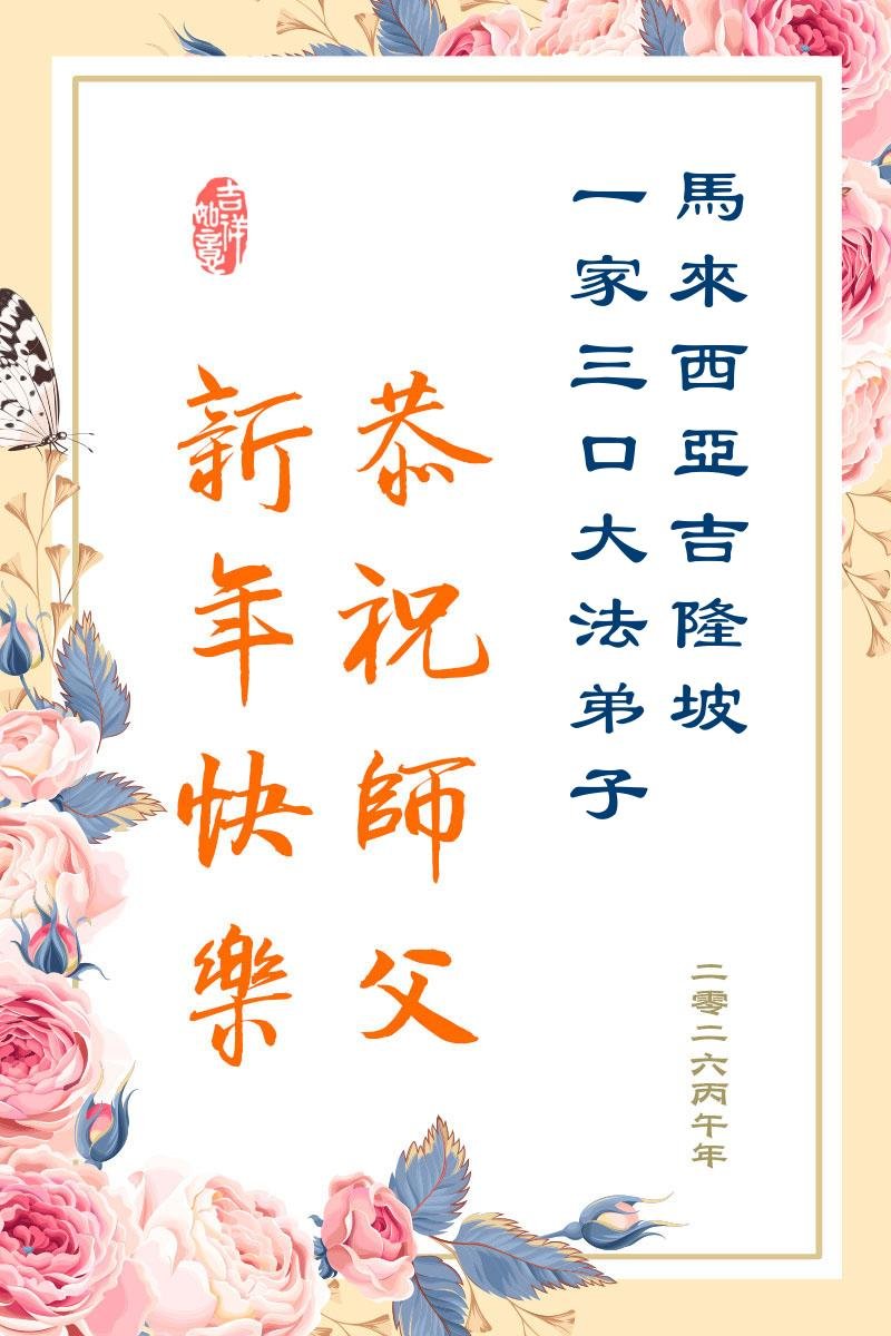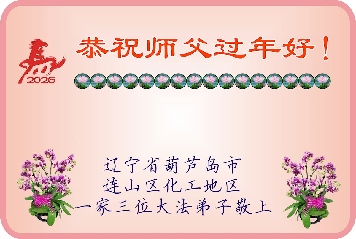 尊敬的李大师您好,您辛苦啦!在新年到来之际,我们一家给李大师拜个早年,祝李大师新年快乐!谢谢您的慈悲救度!