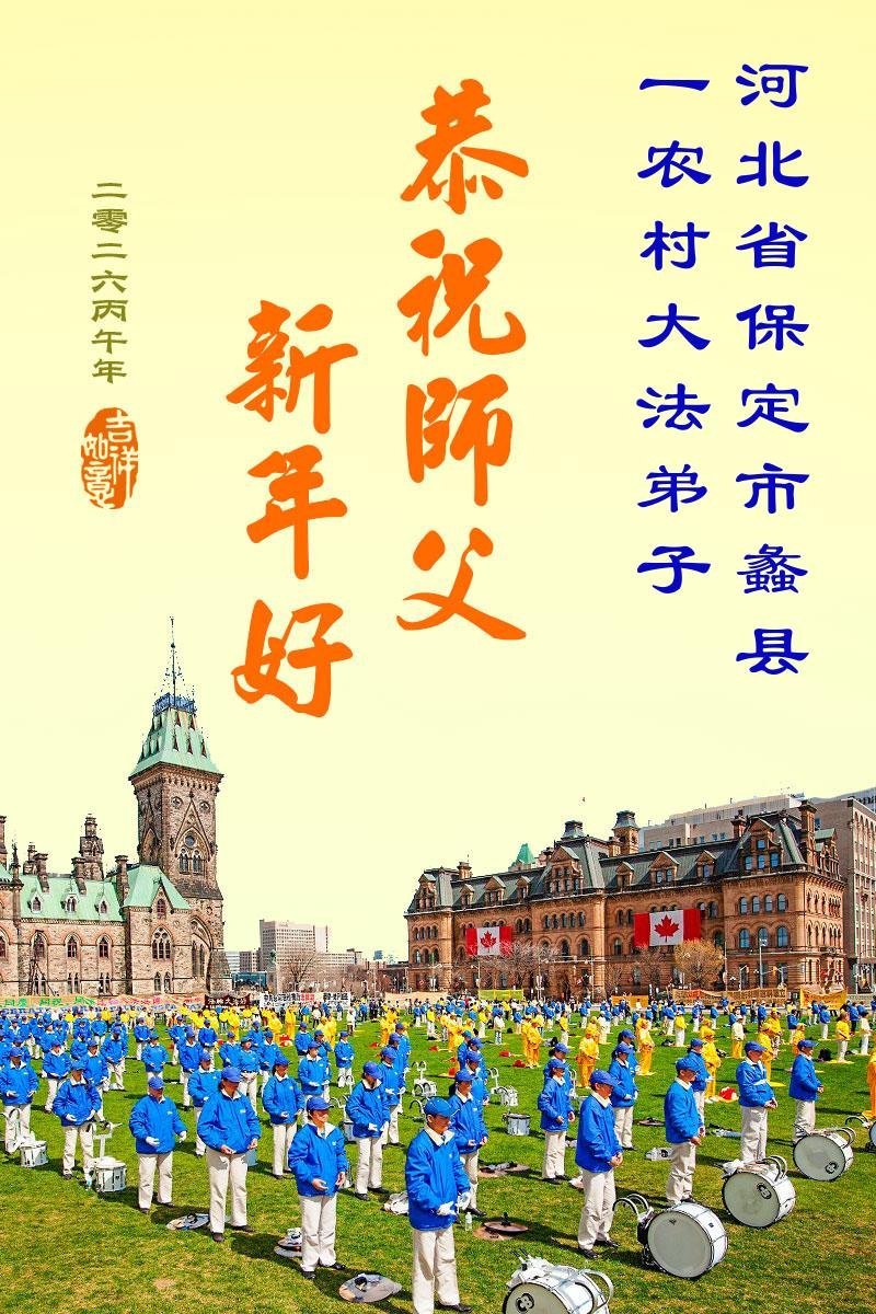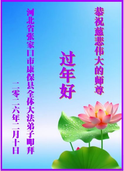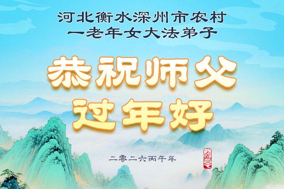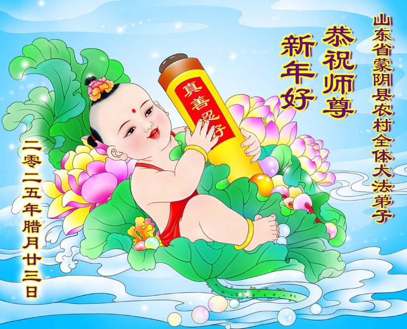 我们这些乡下人不认识几个字,不知道怎样才能表达出我对您的感恩。新年到了,我们要对您说一声:谢谢您,慈悲伟大的大法师父!世人有救了,您是我们得救的唯一希望!法轮大法好,真善忍好!