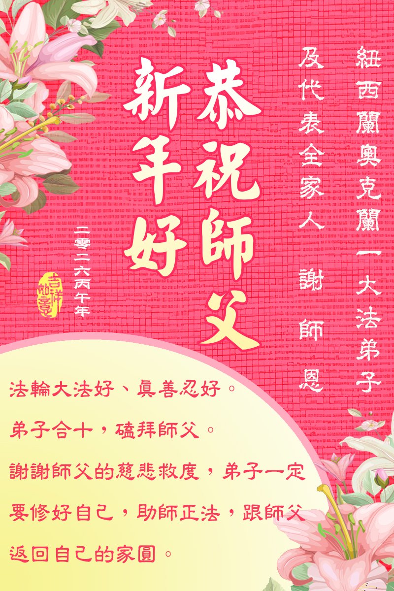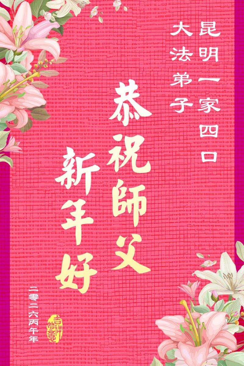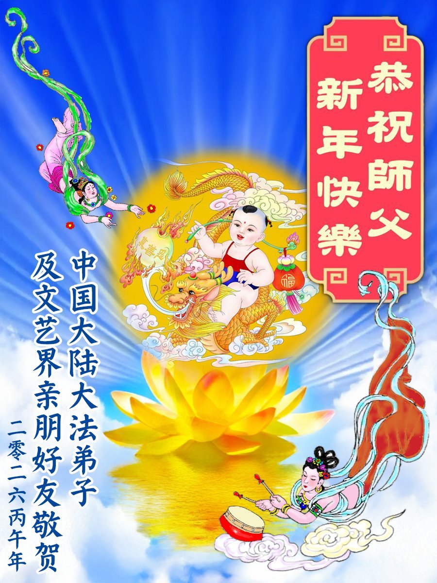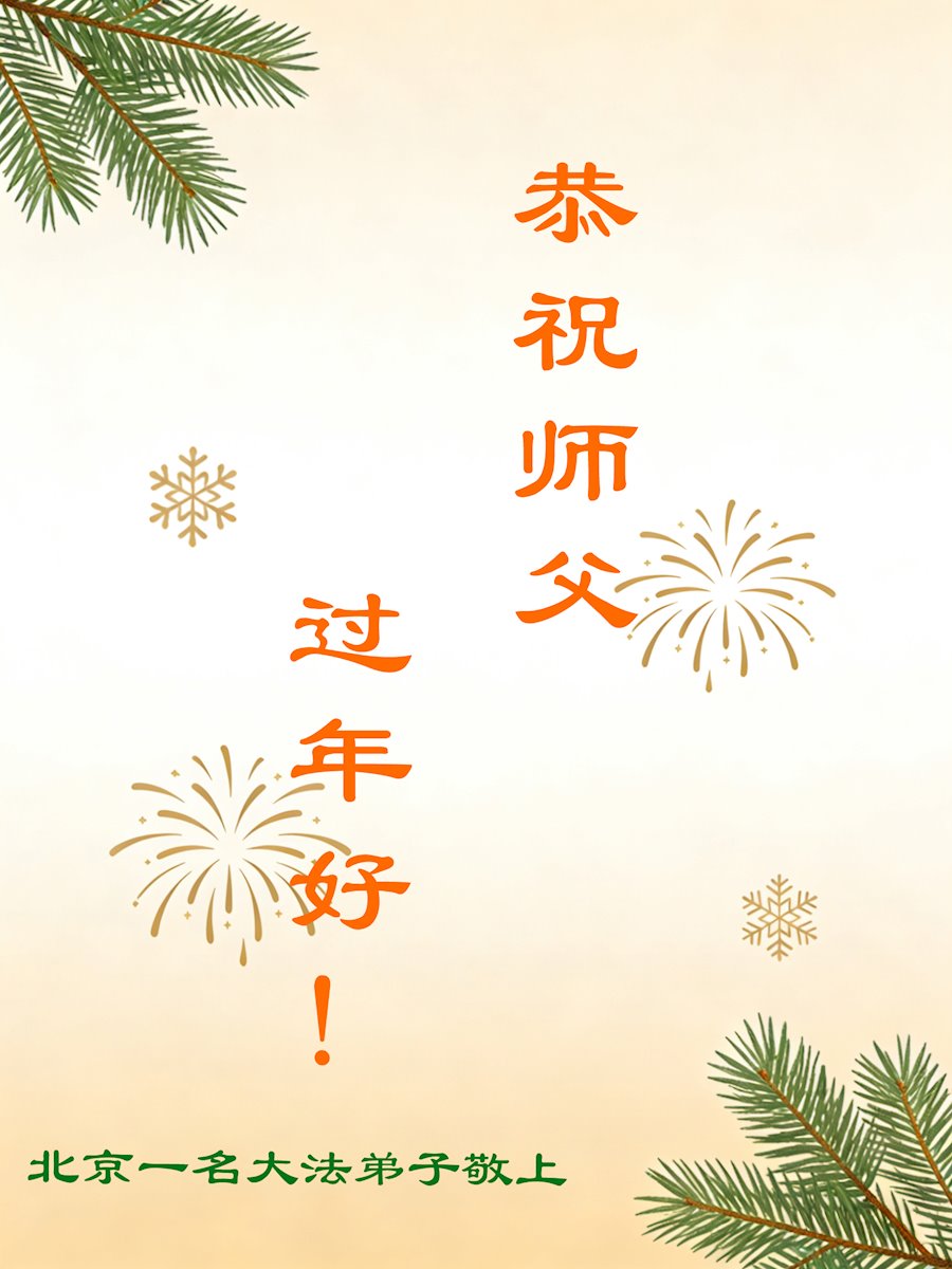 恭祝大法师父新年快乐!谢谢您洪传宇宙大法,我念“法轮大法好!真善忍好!”我的眼睛就不疼了。