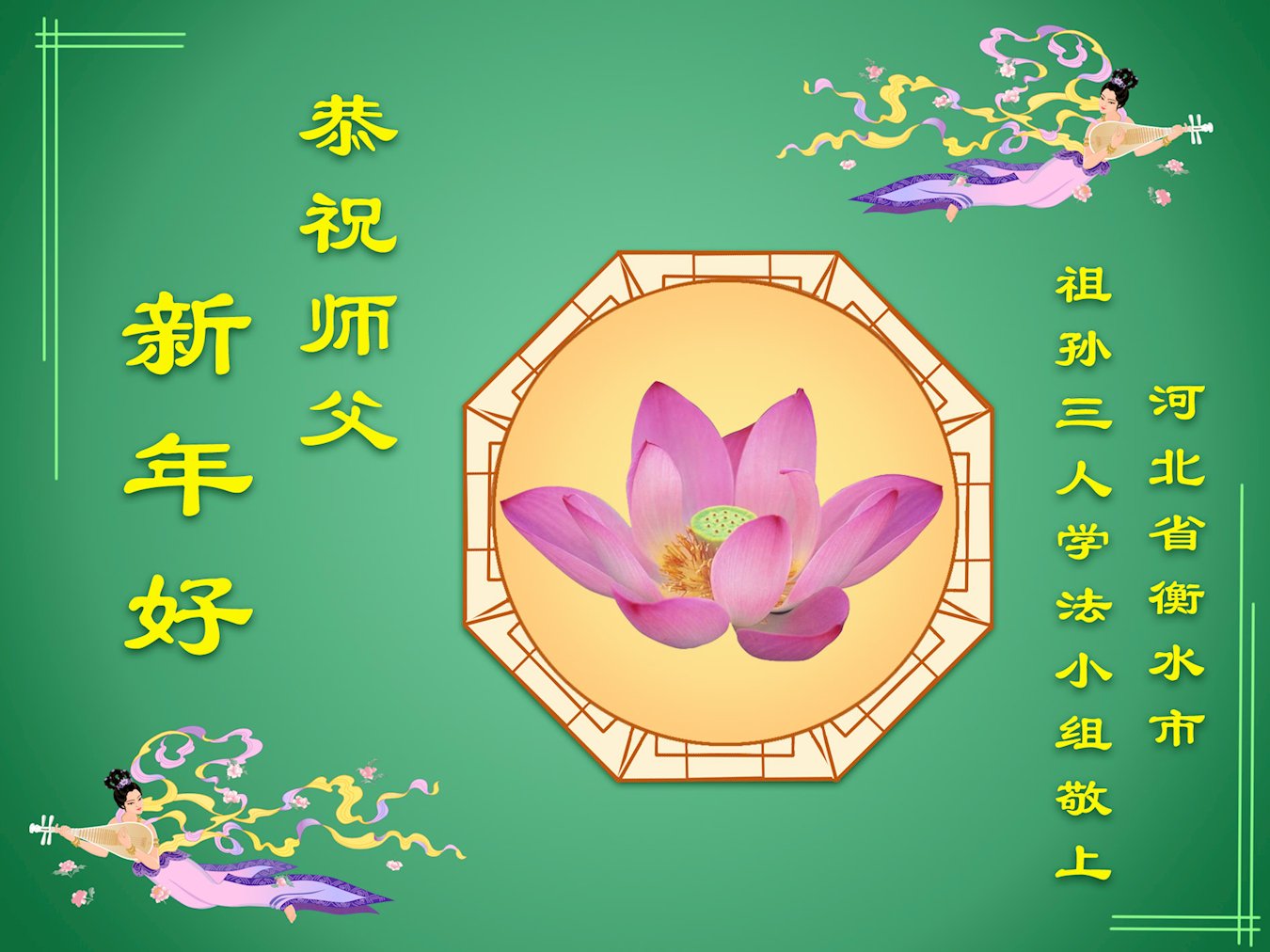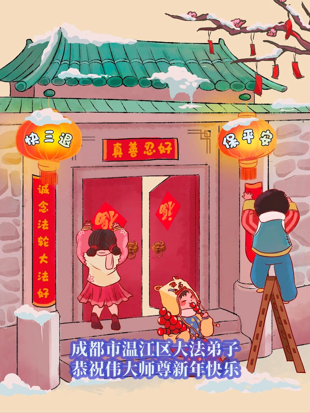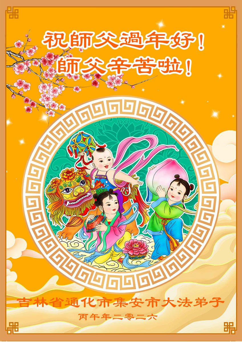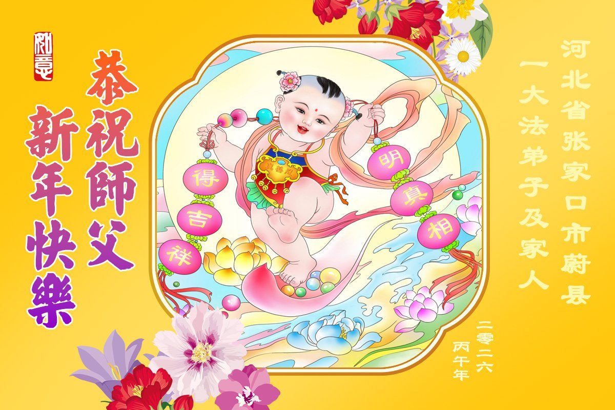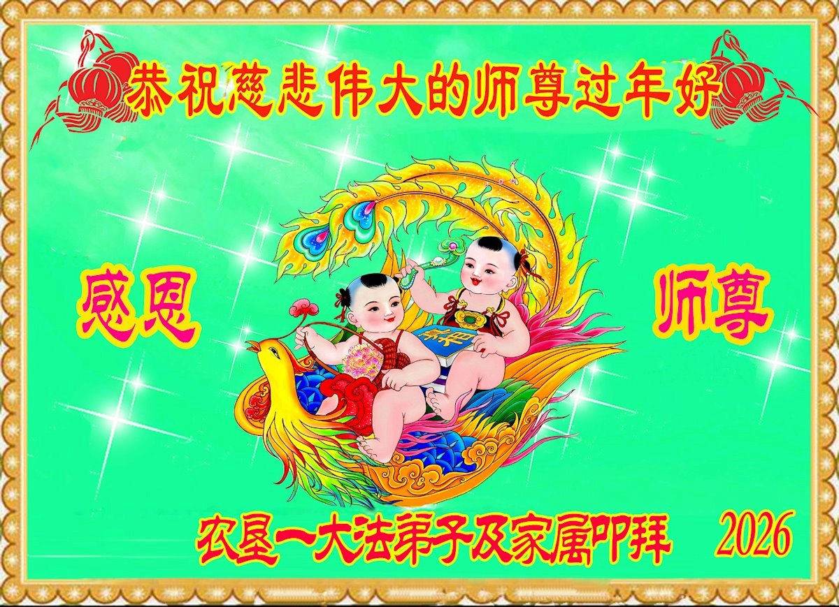快过年了,我们全家给师父拜年,恭祝大法师父过年好!