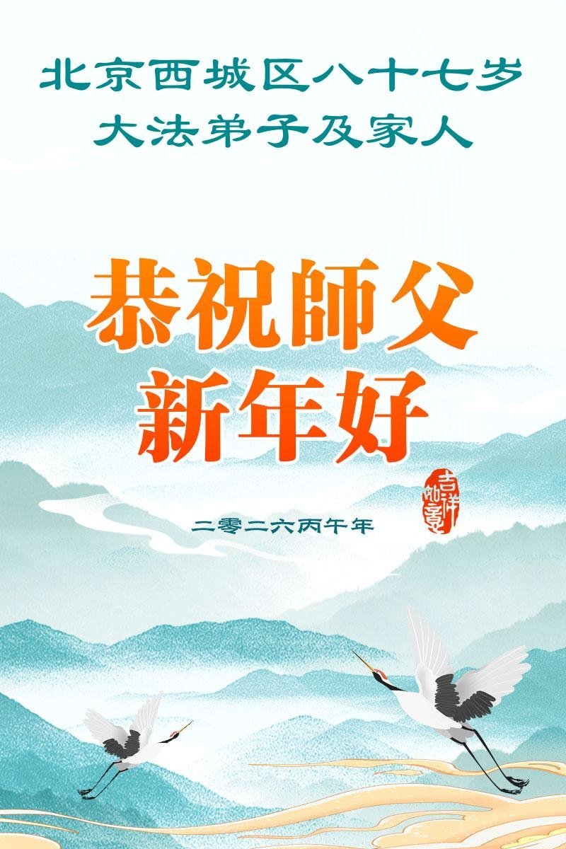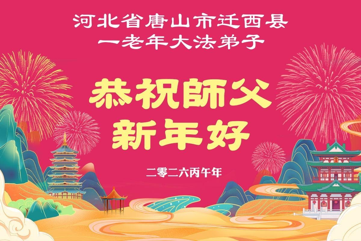 尊敬的李大师您好!您辛苦啦!我老伴修大法,我支持老伴修炼也受益。我得脑血栓时,是李大师救了我,我没有留下后遗症,后来您还几次帮我净化身体。我每天都诚心敬念“法轮大法好、真善忍好。”我更感谢李大师多次救了我的命!我现在八十多岁了,身体很好,还能踩三轮车送老伴去比较远的地方学法。全是托李大师的福。在新年到来之际,我给李大师拜个早年!谢谢您的慈悲救度,感恩李大师救命之恩!