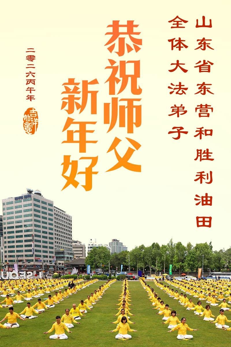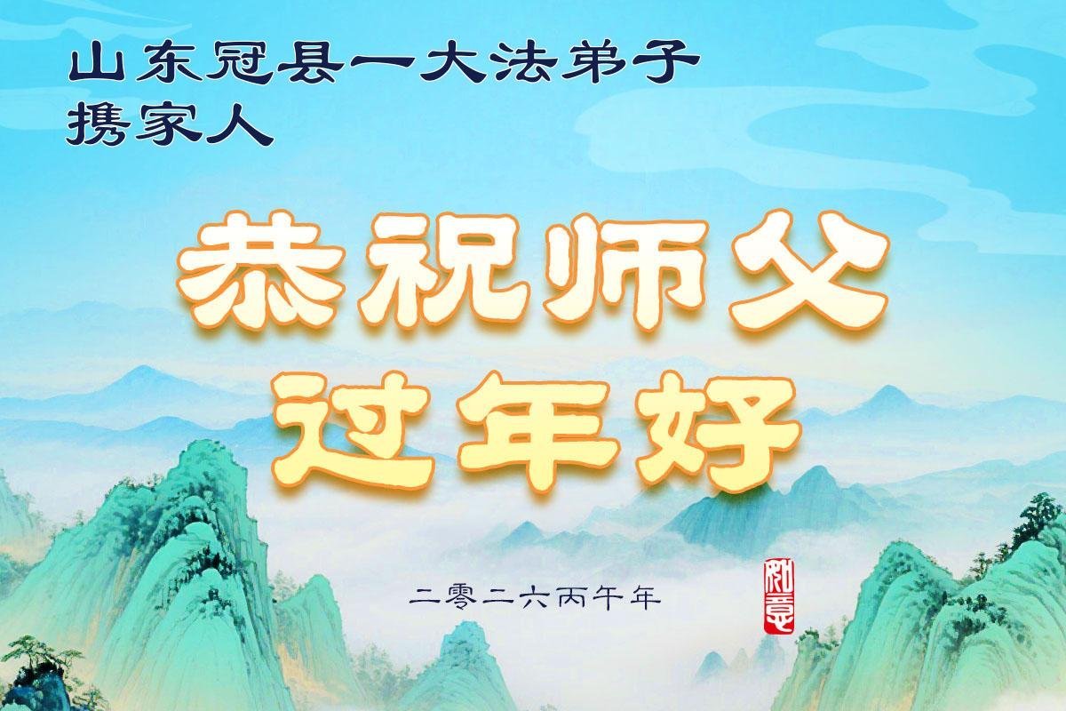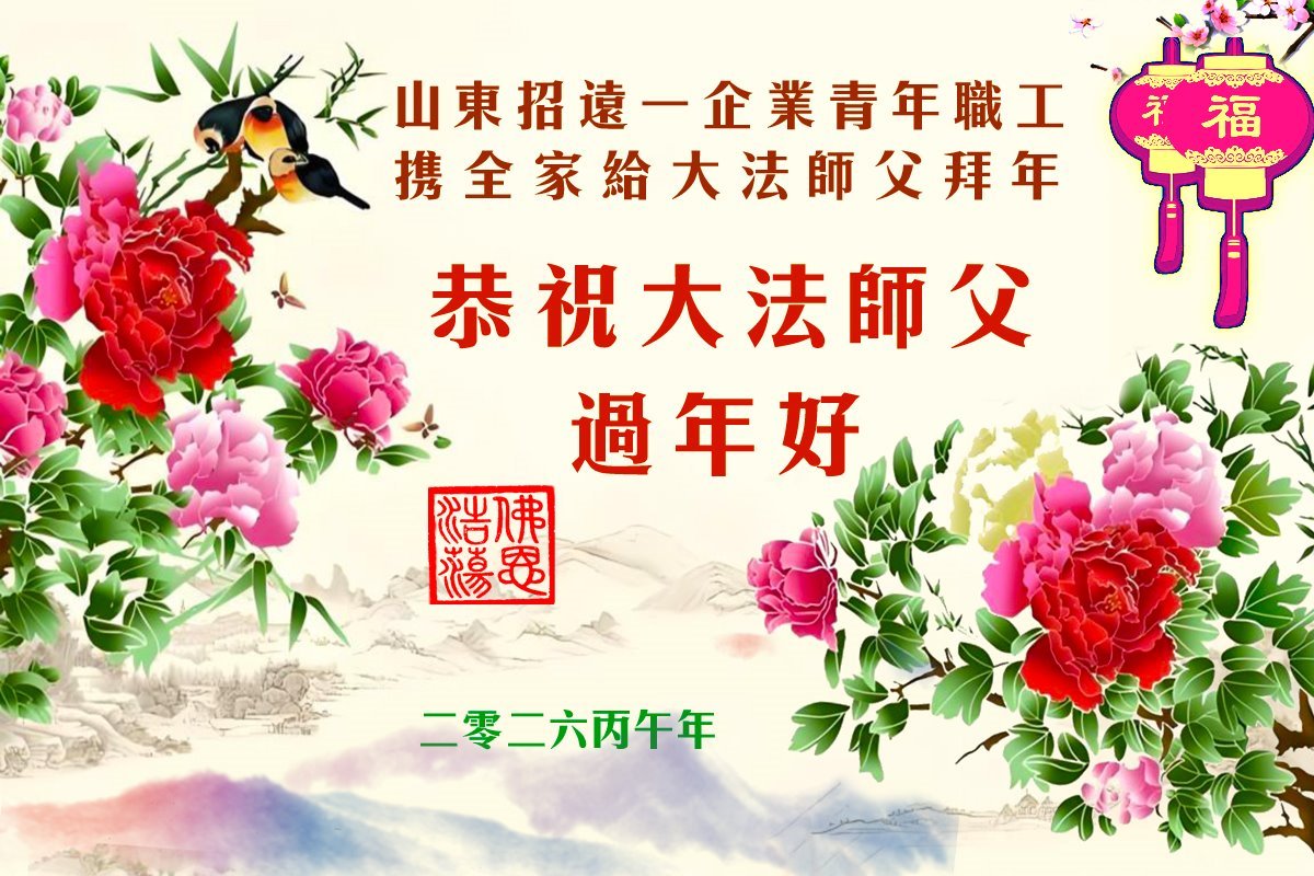 山东省招远市一企业青年职工携全家给大法师父拜年!
