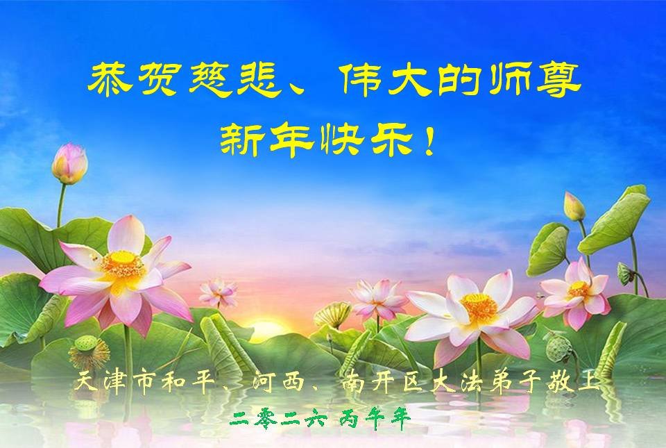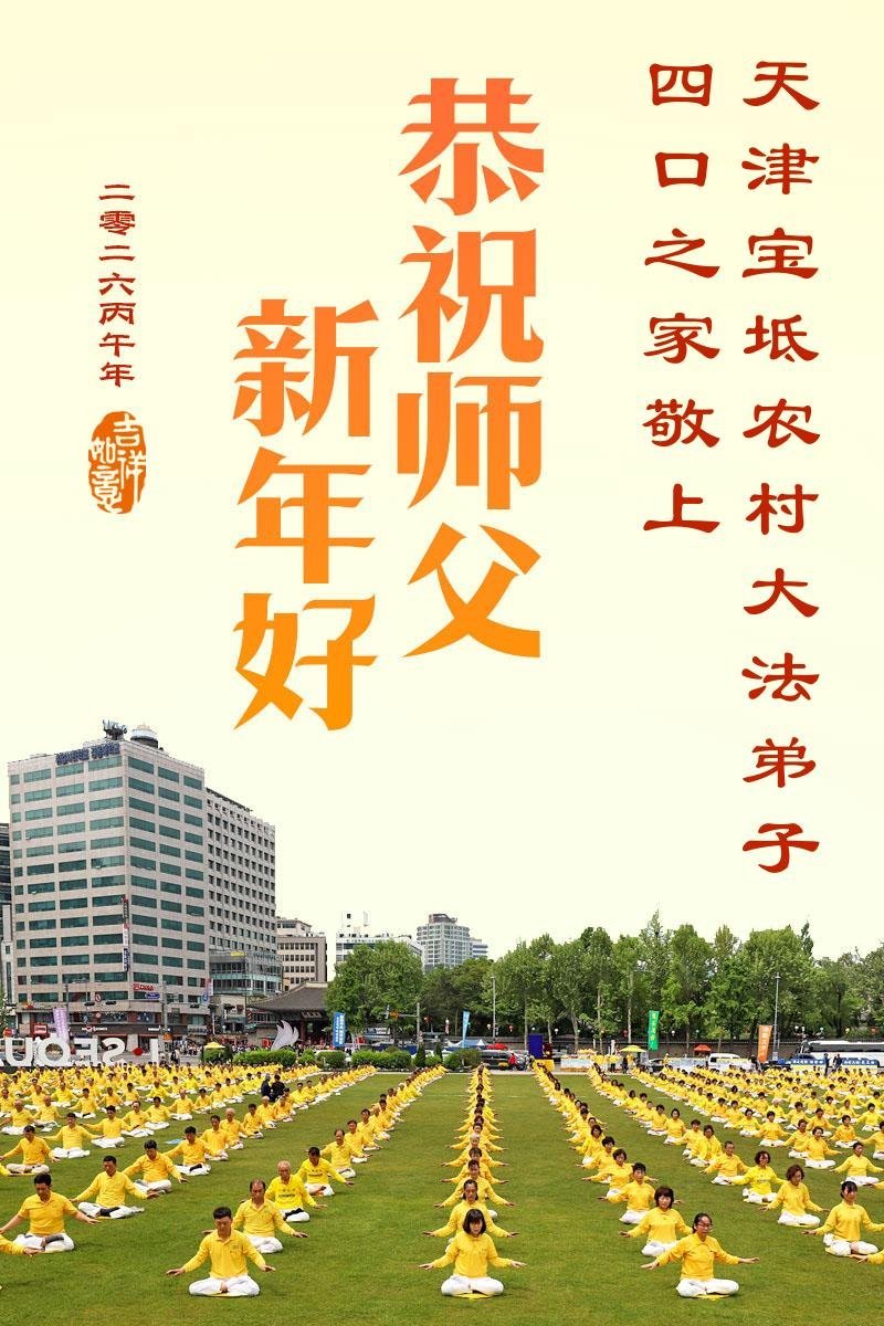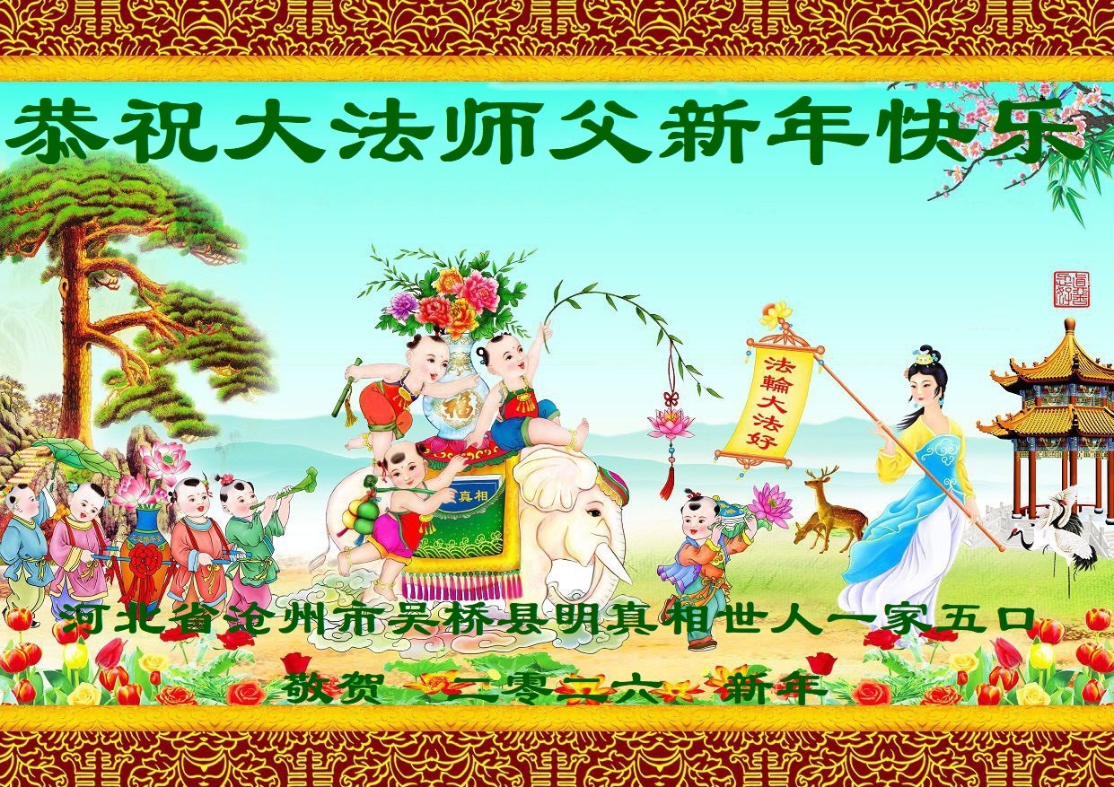 天津市武清区东马圈镇一名大法弟子携全家恭祝慈悲伟大的师尊新年快乐!