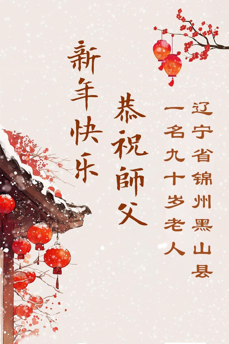 辽宁省锦州市黑山县一名九十岁老人恭祝李大师新年快乐!