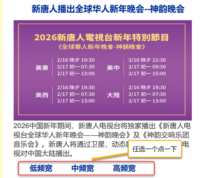 大陆观众收看方法,请参考天地行文库:大陆收看神韵晚会的方法。
