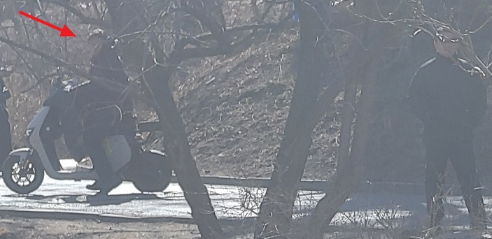 图片中戴眼镜的人就是街道办事处派来的监控人员,他表现的特别卖力,在用手机实时报告学员外出情况时还污蔑学员要打他、骂他。另一张图片中骑在电动车上的人(红色箭头)和他是一伙的,也是监控学员的。还有他们住的汽车的图片。