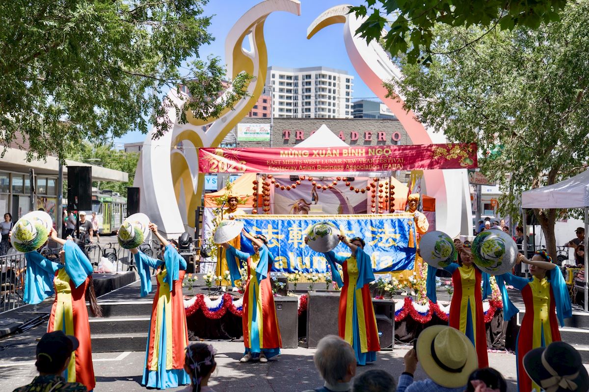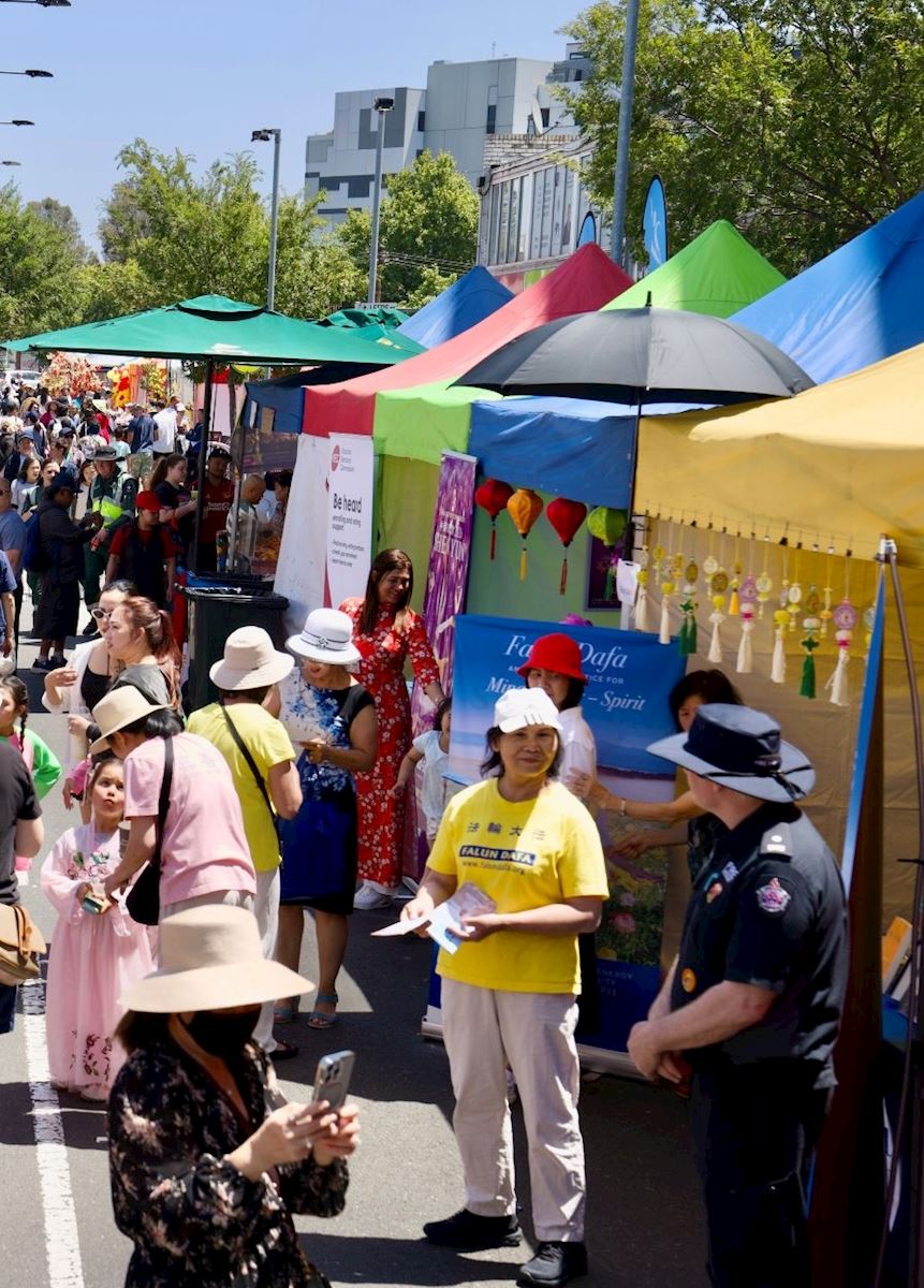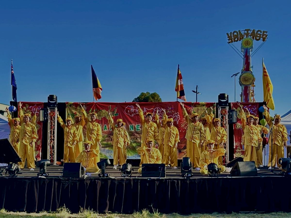 【明慧网二零二六年三月五日】(明慧澳洲墨尔本记者站报导)二零二六丙午马年,从一月下旬开始,直至黄历新年的元宵节,从西区、东区到市中心,墨尔本华人和越裔社区举办了多场新春庆典。活动期间,法轮功团体应邀演出,他们身穿独具特色的演出服,以亮丽的色彩、精彩的表演为当地节庆送去祝福、增添喜庆,也赢得了观众们的掌声和赞誉。