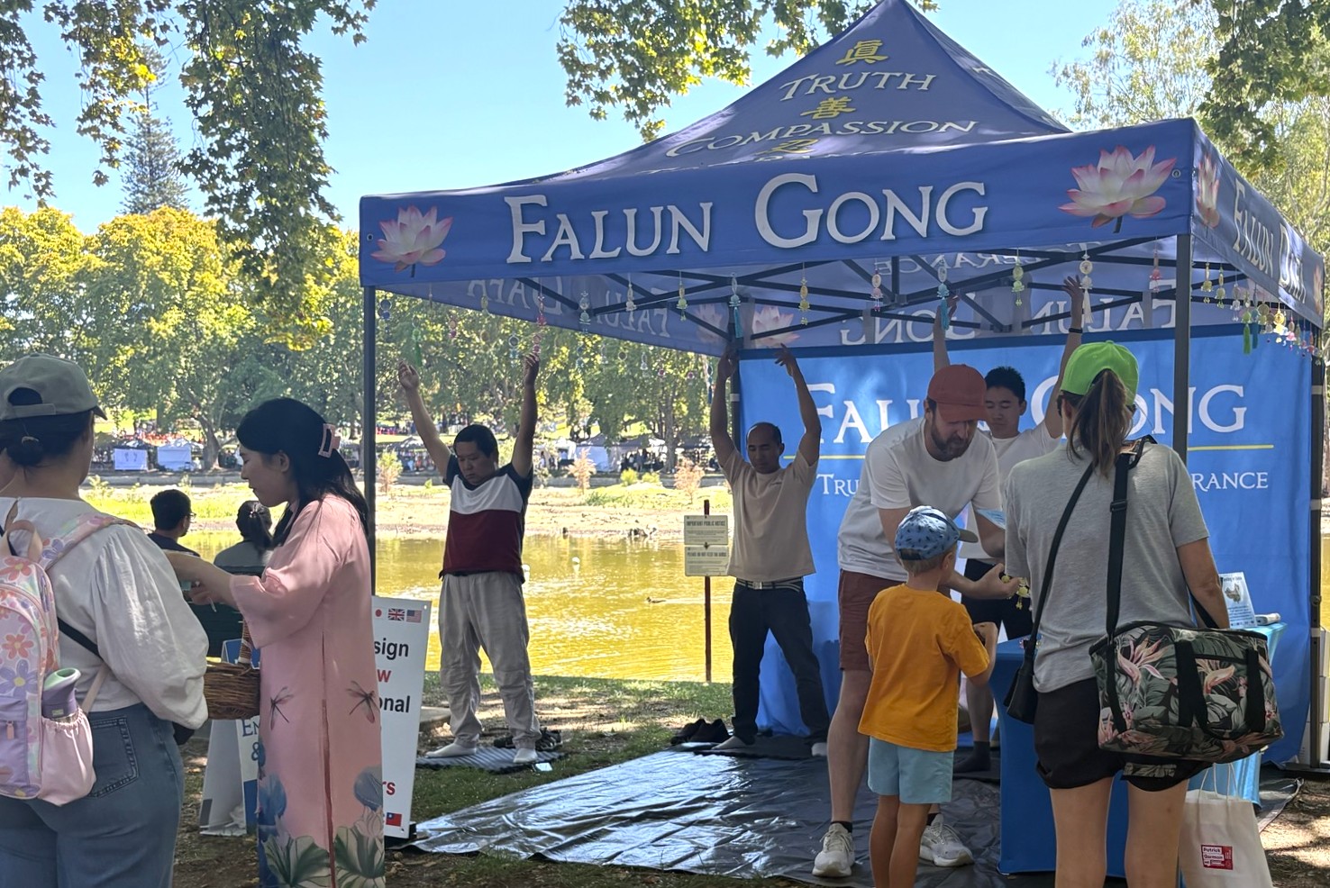 法轮功学员在展位上向民众展示法轮大法的美好;传递真、善、忍普世价值;讲述中共迫害大法的真相;并在舞台上演示五套功法,表演舞龙、腰鼓、舞蹈等,广受人们喜爱和关注。有人表示:“真善忍的价值观是我们应该永远铭记于心的。”