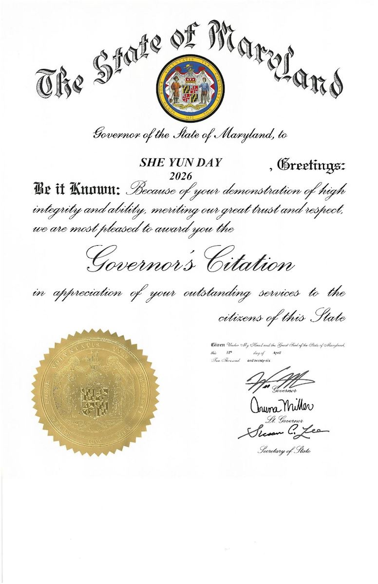 马里兰州长政要颁发褒奖