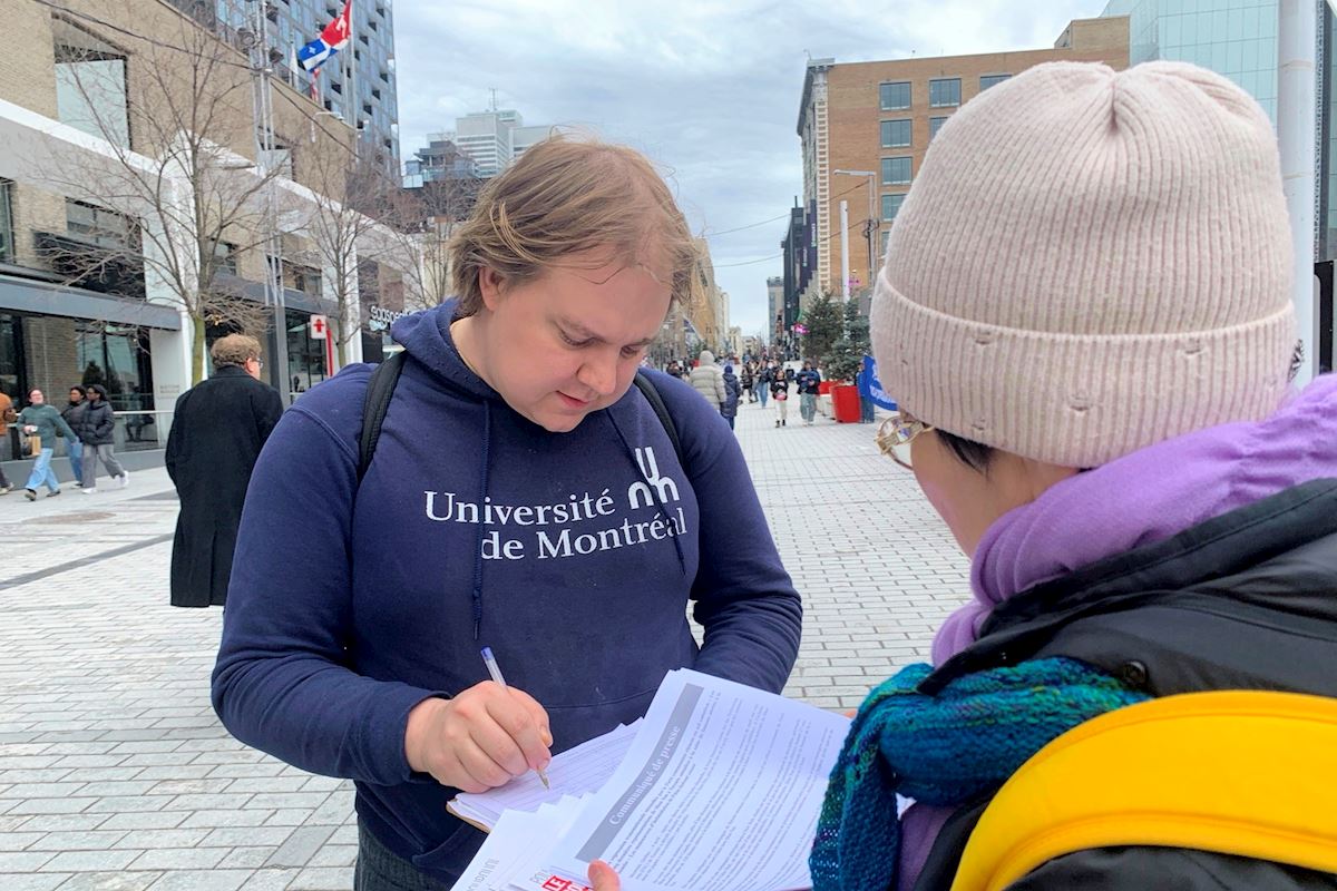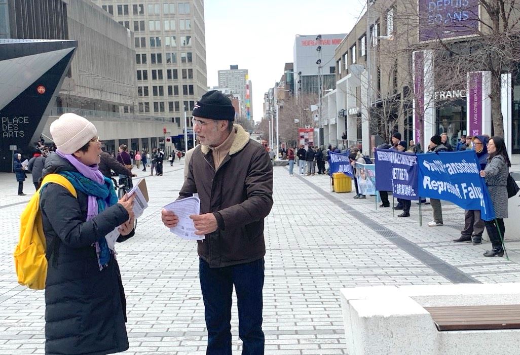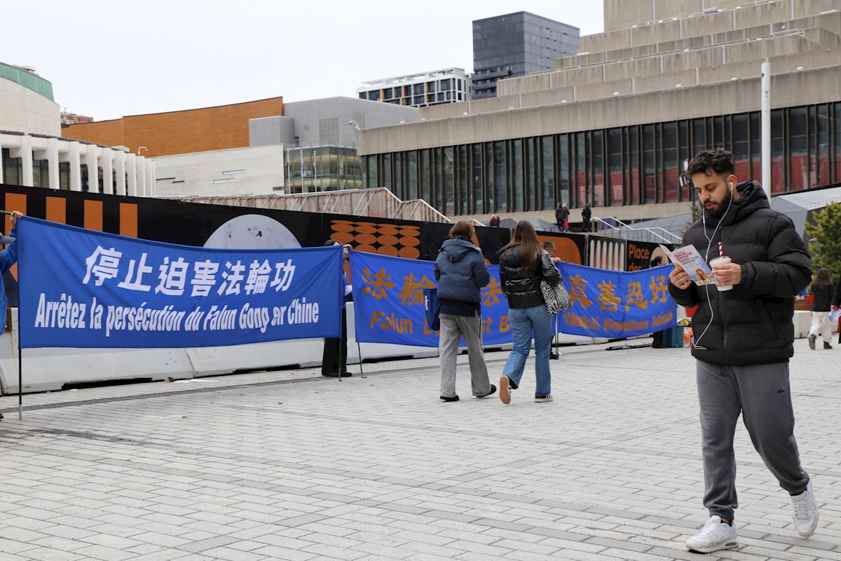 【明慧网二零二六年四月十九日】二零二六年四月四日和四月十一日两个周末, 法轮功学员在蒙特利尔市中心传真相,呼吁公众关注中共对法轮功的残酷迫害,揭露中共将迫害延伸到海外。活动得到民众响应与支持。