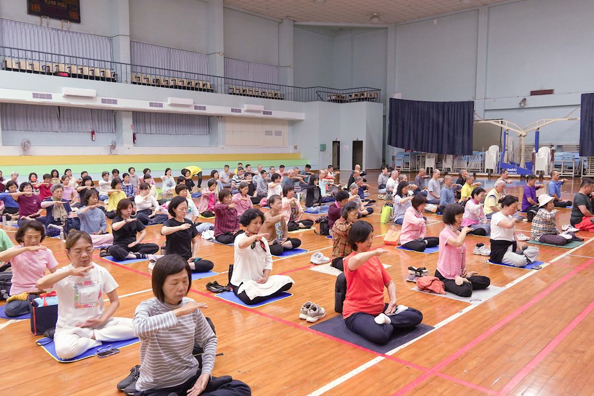 ![]() 图3~4:来自台湾南区五县市法轮大法学员于第二天(三月二十九日)清晨,在中华电信学院高雄所体育馆集体炼功。 |