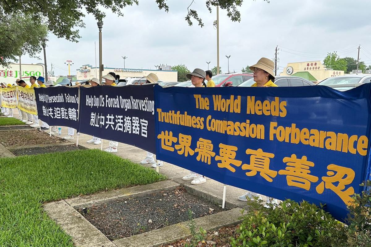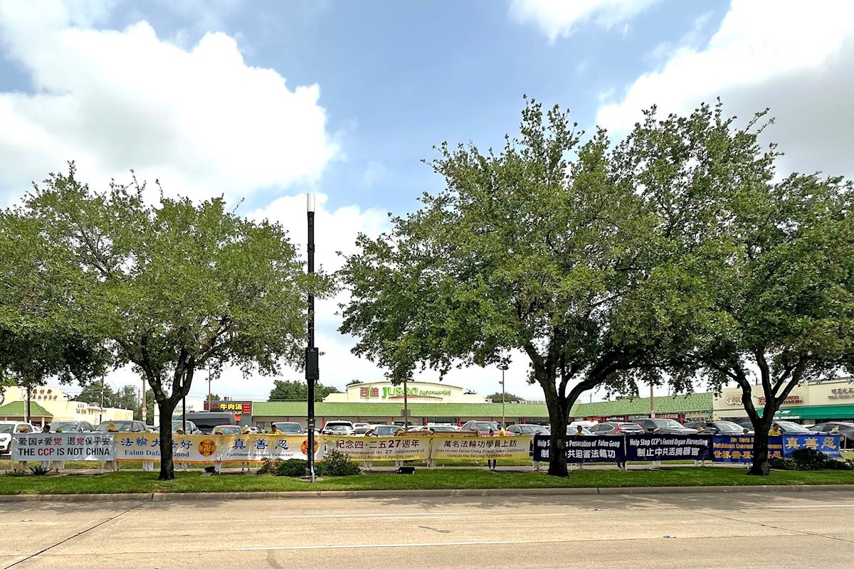 一九九九年的四月二十五日,万名法轮功学员来到北京国务院信访办上访,和平表达三个诉求:立即释放天津被非法抓捕的法轮功学员;允许法轮功书籍公开出版发行;为法轮功学员提供合法的修炼环境。二十七年后的今天,在大洋彼岸的休斯顿,法轮功学员们依旧以和平、理性、非暴力的方式向民众讲述法轮功真相。