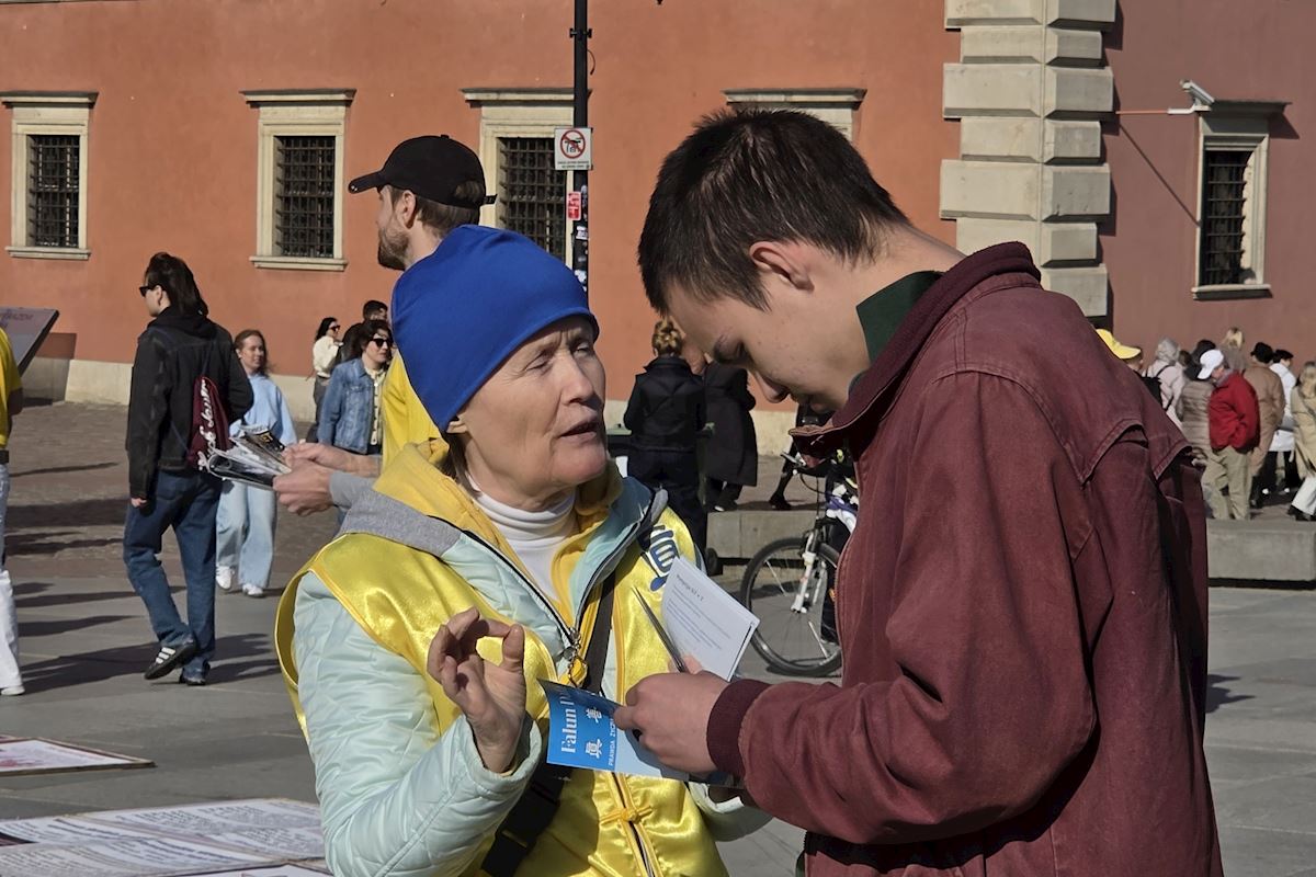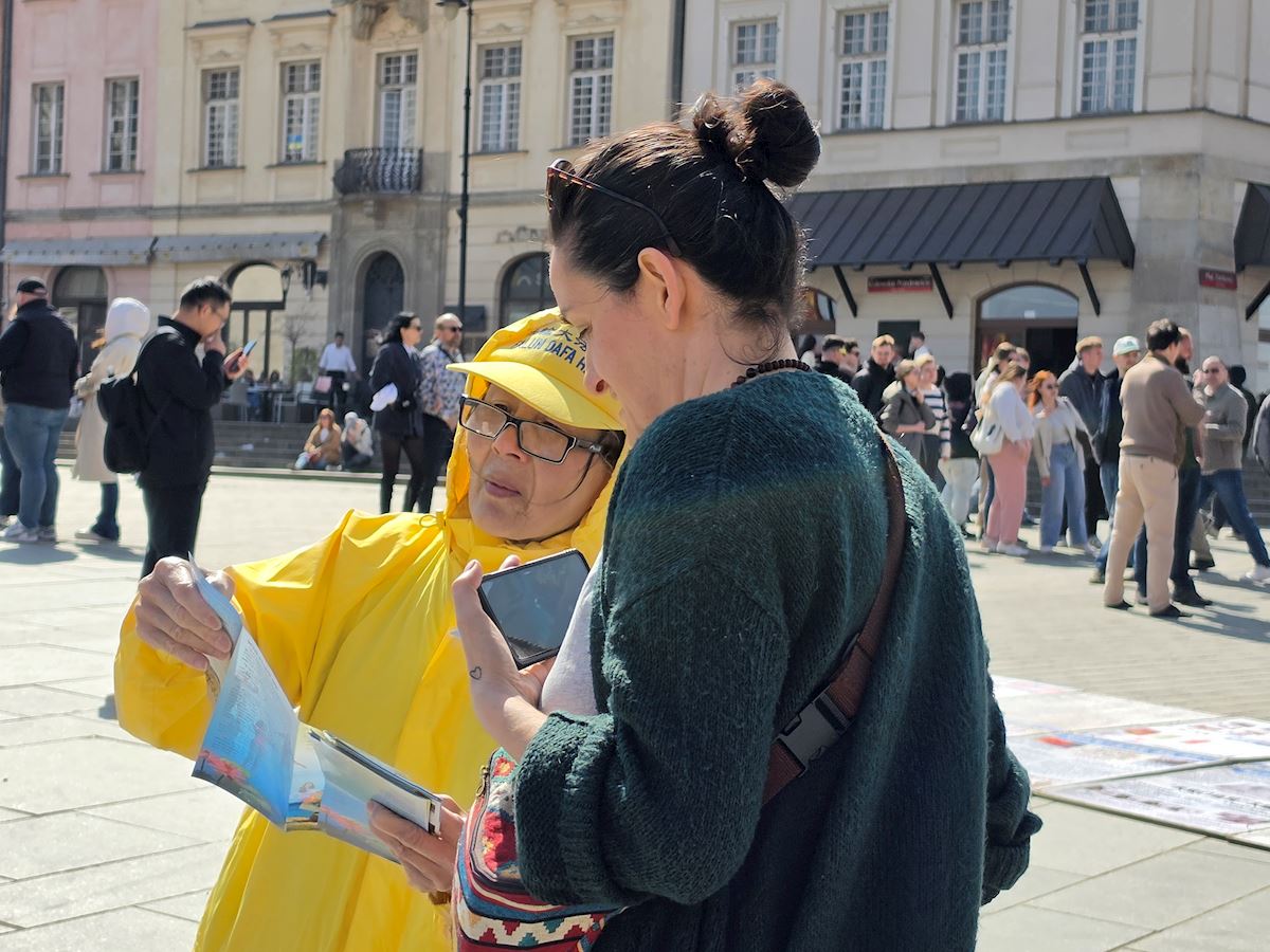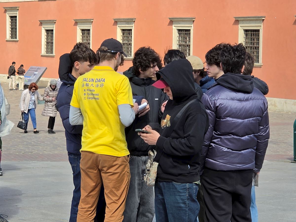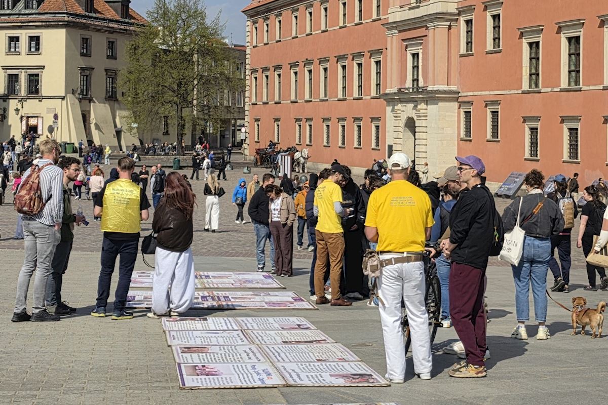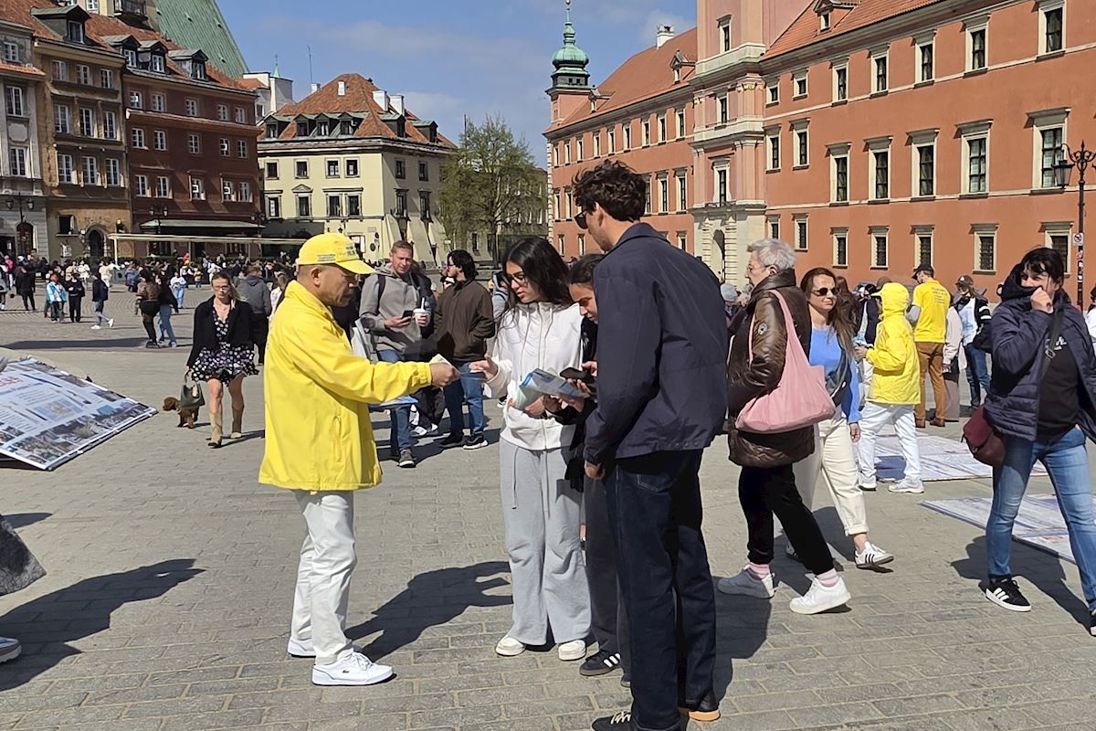 今年四月二十五日华沙古城广场和格但斯克长街广场上,法轮功展位在熙熙攘攘的人群中显得格外令人瞩目,慈悲的《普度》、《济世》乐曲,缓和的五套功法展示,整齐的炼功队伍及长长的真相展板,不断吸引路人驻足观看,拍照、学功、交谈,几乎所有前来了解法轮功真相的人都在停止迫害法轮功的征签簿上签上自己的名字。