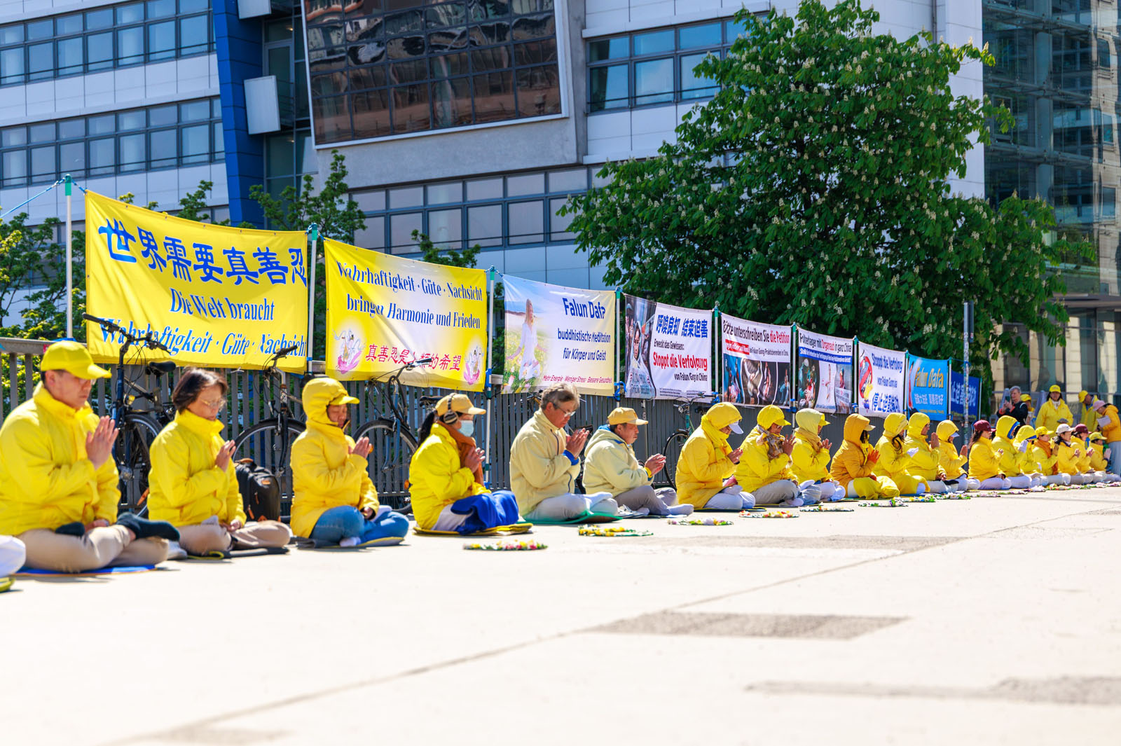 四月二十五日上午,柏林部分法轮功学员在中共大使馆对面的扬诺维茨桥(Jannowitzbrücke)上,举办了和平抗议活动。在大型的横幅写着“世界需要真善忍”、“法轮大法好 真善忍好”以及“呼唤良知 停止迫害”等字样。法轮功学员在桥上展示了功法,向路人发放真相传单,并征集签名反迫害。