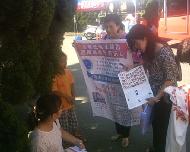 小弟子们的课程安排有学法、炼功、发正念,另外还有生动活泼的画画、说故事和教唱时间。为小弟子们学习上的方便,还以年龄大小将其区分为小儿童班和大儿童班 。别看他们年纪小喔,很多人都是能上台背出〈论语〉或〈洪吟〉的呢。说故事时间是小弟子们最期盼的,一脸专注地听着台上大法学员讲的故事,并能从中得到关于真善忍的启发,这是多么幸福啊。同时我们也感受到学员在事前准备以及对小弟子教学的用心。至于大人们,一些学员集体学法、交流,另一些学员则到人群众多的校园中做征签活动。这一天「恰好」是中华邮政举办社区活动,校园中人来人往、携家带眷的,正好为我们讲清真相提供了最佳场域。