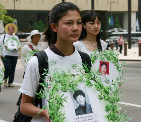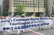 在随后的游行当中,学员们组成了不同的方阵,有功法展示、大法洪传世界、揭露迫害、酷刑、全球诉江等,从联邦广场一直游行到芝加哥中领馆前,并在那里集体发正念。   功法表演方阵 | 揭露迫害致死方阵法轮功学员表示,我们今天聚集在这里是要把这场中共对法轮功学员的残酷迫害揭露出来。同时,我们要告诉世人六年来法轮功学员在面对迫害后所表现出来的大善大忍,因为我们坚信,正义必将战胜一切谎言、暴力和邪恶。 |