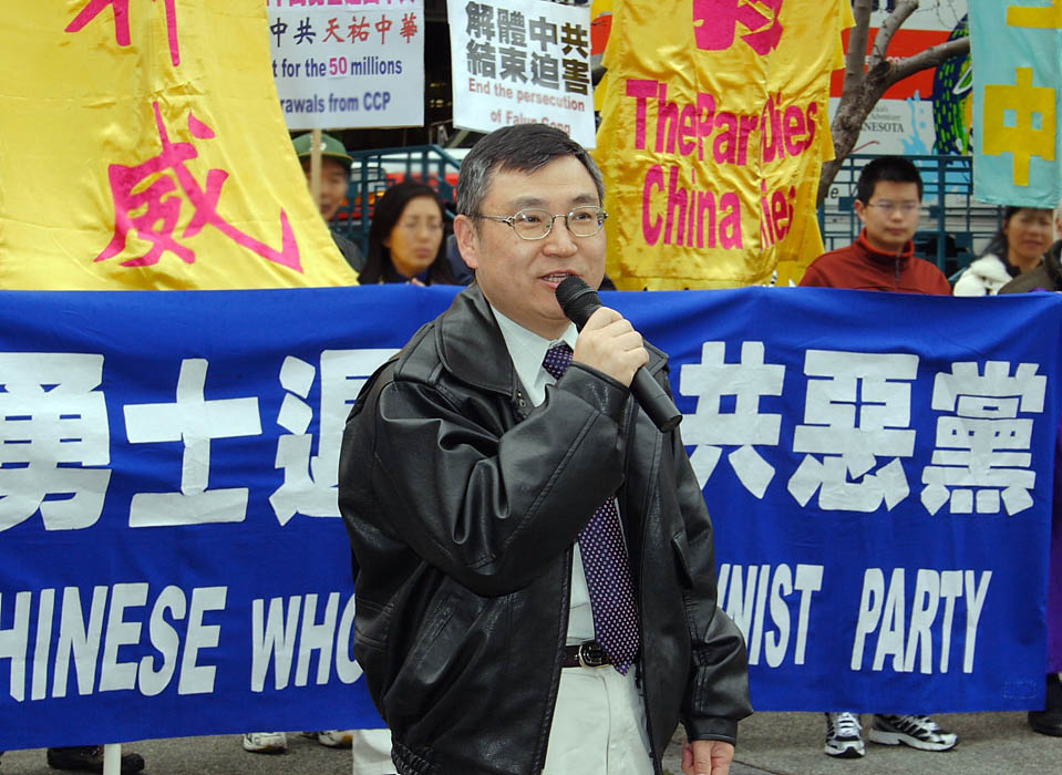 自从二零零四年十一月《九评共产党》社论发表以来,各地退党服务中心应运而生,许多法轮功学员作为退党服务义工,顶住中共邪党各种干扰和破坏,在中国大陆和世界各地日复一日地传《九评共产党》、促“三退”(退党、退团、退队),现在已有五千万中华儿女认清中共邪灵的真面目,感受到古今中外预言传说预示中“天灭中共”的真实性和急迫性,从而义无反顾地走上退党自救的光明之路。 退党中心代表:中共必将淹没在退党大潮中 北加州退党服务中心代表马有志博士首先发言。他表示,今天在这里庆祝五千万中国同胞退出中共,这是一个大喜的日子。中共惧怕民众“三退”(退党、退团、退队),最近大陆发生的一系列事例都说明这个问题。有这样的一个例子,大陆一个党员的房子被拆迁,他去跟政府要赔偿费,没人理他,于是他在大纪元网站上发表声明,退出中共。结果中共官员知道后很害怕,就退给他和他的朋友六百万赔偿金。 法轮功发言人:退党是和平解体中共的道路 旧金山法轮功发言人张雪容博士介绍说,目前,中国著名律师高智晟又被中共抓走,他因为揭露酷刑,自己却正在遭受着酷刑,这反映出中国的现实。中共对高智晟律师的迫害已是令人触目惊心,而那些迫害高律师的警察却声称,对高律师的迫害只是一部份,那些对法轮功学员的迫害手段还没有完全用在他身上。有些人不愿面对中共对法轮功的迫害,因为实在是太残酷,到了难以置信的地步。现在从高律师被迫害的事实来看,这些迫害都是真实存在的。任何有良知的人,都不应该再与中共为伍。张雪容博士表示,退党是最和平的拒绝邪恶、解体中共的道路。 旧金山居民曾文彪表示,《九评共产党》揭露了中共的丑恶嘴脸。自从《九评》发表以来,中共非常心虚,不敢辩驳。他表示,退出中共还可以为顺利办理移民和入籍等带来便利。最近纽约全球退党服务中心正式对外公布其新增服务项目:为声明三退的民众办理具有法律效应的《三退证书》。这份具有签名和盖章的退出中共党团队组织的正式证书,受到海外华人及移民官员的热忱欢迎。证书的出现善解了来自中国大陆的华人在办理移民、避难、入籍、找工等作背景审查时以往所出现的尴尬局面,为顺利办妥各类手续提供方便,也为自我精神觉醒留下美好记忆。 法轮功学员:抓紧时间退出中共邪党 法轮功学员亚伯拉罕在发言中表示,虽然《九评共产党》在大陆被禁,但人们突破网络封锁,利用各种渠道传阅《九评》,退出中共。随着退党大潮的逼近,以及大陆不断出现的抗暴维权活动,人们看到中共正在解体,自由的脚步越来越近。当更多的中国民众退出中共时,中国就会有一个光明的未来。 湾区工程师张先生呼吁中国同胞,中共强加于党团员和少先队员,要他们向中共血旗宣誓,为其“奋斗终生”。现在神佛清算中共的日子就要到了,抓紧时间退出中共邪党及其相关组织,就是自救救人。 来自罗马尼亚的法轮功学员史蒂夫表示,他清楚记得,一九八九年东欧共产党垮台时,罗马尼亚的一个将军出现在电视画面上,他说罗马尼亚的军队站在人民的一边。几个小时后,罗马尼亚共产党就瓦解了。史蒂夫表示,人们现在在中国利用各种方式退出中共。他希望看到中国的军队不要镇压人民,而是站在人民一边。历史证明,独裁政权终将垮台,善恶必报是真理。希望更多的民众退出中共。 希望之声评论员兰述认为,在中国大陆仍在维权请愿的民众应该退出中共。中共做什么事,都只是为了巩固其政权。在中共执政的六十年里,民众已经走过了一个漫长的上访请愿之路,最后的结果是越上访越没有权利。他说:“那些希望中共通过体制内改革,使自己权利受到保障的人,请你们放弃对中共的幻想。退出中共是唯一的维权之路。” 民众:制止迫害,并让更多的人知道真相 从弗吉尼亚来旧金山出差的Allen Hoffman一直在观看声援退党活动。他表示,作为观众,他对中国民众退出中共表示支持。他说:“希望中国民众能得到更多的支持,最终让中共停止侵犯人权的行径。”看到展板上关于法轮功学员被迫害和中共活摘法轮功学员器官的暴行,他表示,希望能向中共施压,制止迫害,并让更多的人知道这些真相。 集会后,来自旧金山湾区的各界人士在中国城举行了沿街游行。有些现场民众也纷纷加入游行行列。来自洛杉矶的游客Arie Tuvia说一口流利的中文,今天正巧在这里碰到集会活动。他表示自己一直以来关注着中国的问题,他和朋友加入声援退党游行,是要支持中国民众的退党义举。他说:“中共现在活摘法轮功学员器官出售牟利,中共给中国人民带来巨大伤害。我希望中国人站起来,反抗这样的统治。”