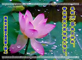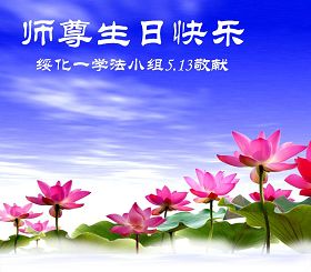 【明慧网二零一零年五月十四日】(明慧记者报道)5月13日是世界法轮大法日。继昨日发表的,今天明慧网分十二篇文章发表大陆各地区的大法弟子发给李洪志师父和“5.13”世界法轮大法日的祝贺、贺卡。以下是明慧编辑部今日整理出来的270地区大法弟子的贺词、贺卡汇编:南京军区机关家属大法弟子祝师尊生日快乐!敬贺世界法轮大法日!甘肃平凉全体大法弟子恭祝世界法轮大法日!安徽一大法弟子携家人恭祝师尊生日快乐!青岛大法弟子恭祝师尊生日快乐!绥化一学法小组大法弟子恭祝师尊生日快乐!湖南衡阳县全体大法弟子敬祝师尊生日快乐!重庆合川一学法小组庆祝世界法轮大法日,祝慈悲的师父生日快乐!广东曲江全体大法弟子恭祝慈悲伟大的师尊生日快乐!与全球大法弟子同庆世界法轮大法日!平山县大法弟子祝师尊生日好!内蒙古霍林郭勒市大法弟子恭祝慈悲伟大的师尊生日快乐!秦皇岛市一学法小组庆祝五一三法轮大法日,恭祝师尊五十九岁华诞生日快乐! 福建漳平全体大法弟子恭祝师尊生日快乐!三河市大法弟子叩拜师尊生日快乐!山东大法弟子敬贺师尊华诞暨大法洪传十八周年。山东章丘全体大法弟子恭祝慈悲伟大的师尊生日快乐!请师尊放心在最后的时间,做好三件事绝不辜负师尊的慈悲苦度! 吉林省东丰县全体大法弟子恭祝师尊生日快乐!同祝世界法轮大法日!南京秦淮区大法弟子贺全世界法轮大法日,敬祝师尊生日快乐!中国大陆军队系统大法弟子叩拜师尊!敬祝师尊寿辰愉快!普天同庆世界法轮大法日!大连泉水大法弟子祝师尊生日快乐!我们会做好让师尊少一分担心。山东东营大法弟子一家七口恭祝师父生日快乐!中国大陆甘肃兰州大法弟子恭祝师尊生日快乐!四川大法弟子恭祝师尊生日快乐!济南大法弟子恭祝师尊生日快乐!同贺世界法轮大法日!请师尊放心,我们一定会在最后的修炼道路上,以法为师,更加精進的做好三件事,救度更多的众生。 河北省井陉县大法弟子恭祝师尊生日快乐!宜宾大法弟子恭祝师尊生日快乐!庆5.13世界法轮大法日!河北省农业发展银行大法弟子恭祝慈悲、伟大的师尊生日快乐!上海市奉贤区全体大法弟子恭祝师尊生日快乐!十八年风雨路,我们在师尊的慈悲呵护下走过来了。越到最后越要精進,弟子们会谨记师尊教导,走正走好最后的路。 深圳大法弟子集体向师尊问好!揭阳、潮汕地区、深圳大法弟子集体向师尊问好!深圳大法弟子全家三代10人向伟大师尊问好!祝师父生日快乐!祝贺第11届世界法轮大法日。浙江青田县大法弟子恭祝师尊生日快乐!赤峰大法弟子遥祝慈悲伟大的恩师生日快乐!普天同庆法轮大法洪传十八年!合肥全体大法弟子敬祝慈悲伟大的师尊生日快乐!我们一定要努力做好三件事,更好的讲清真相,救度众生。不辜负师尊对我们的苦度。 大陆山东大法弟子祝第十一届法轮大法日,暨恭祝伟大慈悲的师父五十九岁华诞。莱西一家五口大法弟子恭祝师尊生日快乐!山西长治大法弟子祝师尊生日快乐!祝全体同修节日快乐!赤峰市巴林左旗全体大法弟子恭祝伟大的师父生日快乐!我们叩拜师父,感谢师父的慈悲救度。内蒙古霍林郭勒市及周边的大法弟子恭祝我们的五一三,我们的师尊,快乐永远!大连开发区大法弟子跪拜恭祝师尊生日快乐!!!普天同庆、同贺5.13世界法轮大法日!!!鹰潭大法弟子恭贺慈悲伟大的师尊五十九岁华诞!祝愿师尊生日快乐!向慈悲伟大的师尊问好!周村区全体大法弟子祝伟大的师尊生日快乐!长沙大法弟子代表全家恭祝师尊生日快乐!师尊啊,对于您的慈悲苦度弟子无以报答,弟子唯有精進,更精進。 浦东、普陀、静安、长宁、松江大法弟子恭祝师尊华诞!同庆世界法轮大法日!广东云浮大法弟子恭祝慈悲伟大的师父生日快乐!北京大法弟子,值此普天同庆“世界法轮大法日”暨师父五十九周年华诞之际,弟子谨在此叩拜伟大的师尊,遥祝师尊生日快乐!!!代暂未修炼的家人衷心祝愿李老师生日快乐!!! 大陸大法弟子祝师父生日快乐!我代表周围的同修向慈悲伟大的师尊问好!祝师父生日快乐!同修们准备大法日在一起学法炼功(每年都以这种形式祝贺)还有其它方式如发真相资料、贴不干胶、面对面讲真相等。师父您辛苦了,谢谢师父! 龙口市刚成立的3人学法小组的大法弟子恭祝慈悲伟大的师尊生日快乐!张家口万全县全体大法弟子祝慈悲伟大的师尊生日快乐!广州大法弟子向尊敬的师尊问候!恭祝师尊节日快乐!请师尊放心,大法弟子一定会紧随师尊,平稳的走好最后的路,助师正法,救度更多的众生。 赤峰一家恭祝慈悲伟大的师尊生日快乐!中国建设银行系统全体大法弟子祝伟大的师尊生日快乐!师尊:请接受弟子的感恩! 大连市金州区大法弟子恭祝师尊生日快乐!葫芦岛大法弟子恭祝师尊生日快乐!庆祝世界法轮大法日的到来!真善忍好!做好三件事,走好最后的路。 陕西新疆大法弟子恭祝师尊华诞!恭贺十一届世界法轮大法日!黑龙江省双城市大法弟子恭祝师尊生日快乐!福州市大法弟子向慈悲伟大的师父合十叩拜!恭祝伟大的师父生日愉快!!祝贺世界法轮大法日。天津市塘沽区一学法小组大法弟子恭祝恩师洪传大法一十八周年!山东泰安大法弟子祝师父生日快乐!叩拜师父救度之恩!上海市崇明县大法弟子祝师尊生日快乐。宁夏大法弟子祝伟大的师尊生日快乐!弟子叩谢师恩!单县大法弟子祝尊敬