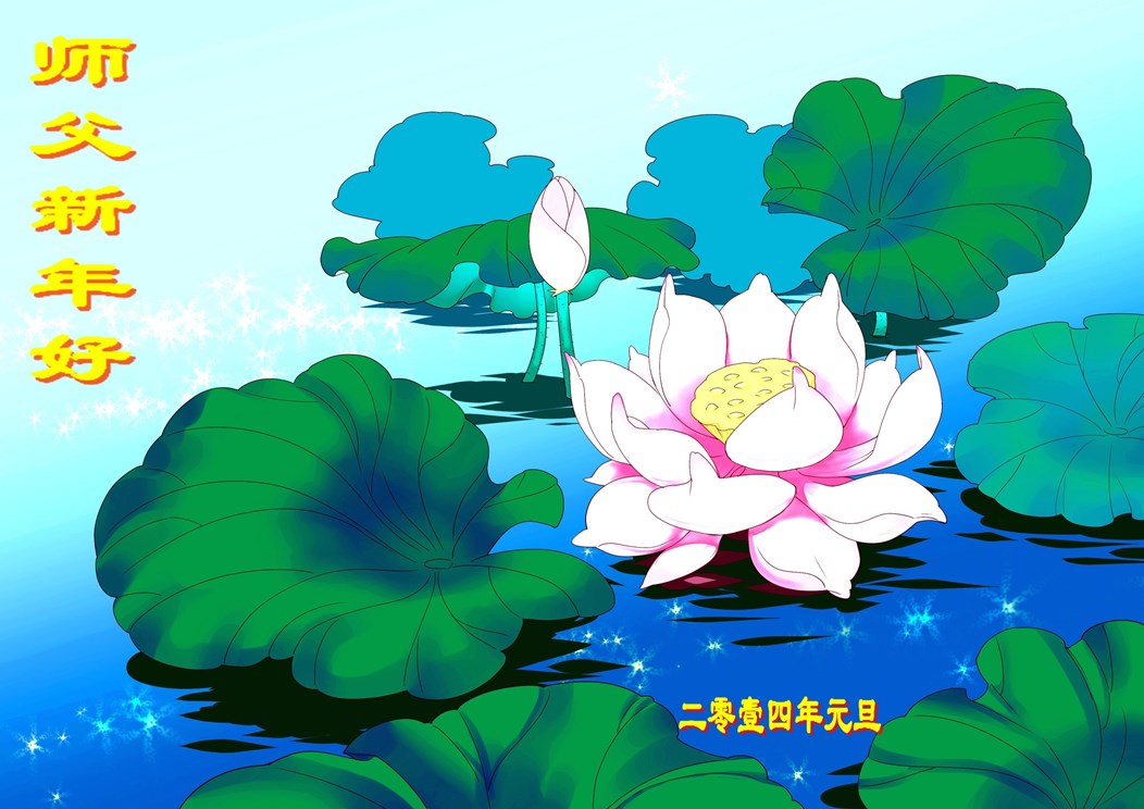 慈悲伟大的师父您好: 转眼之间,新的一年又来到了。弟子们在您的呵护下,又走过了风风雨雨的一年,不知该用什么样的语言来表达弟子们的心情,千言万语汇成一句话:感谢慈悲伟大的师父,我们一定按照师父的教诲,抓紧时间做好三件事,多救人,修心去执,完成使命与师父一起回家。 内蒙阿鲁旗全体大法弟子叩拜恩师 于2014年元旦敬上 山东省烟台市莱州市一学法点全体大法弟子恭祝慈悲伟大的师父元旦快乐!