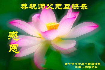 恭祝师父2014年元旦快乐! 我们是湖北十堰的一家三口,从被恶党谎言毒害,到今天想要学法轮功健康身心,我们从心里明白了“法轮大法好!”, 真心的感激、尊敬师父!诚挚的恭祝师父元旦快乐! 湖北省武汉市青山区全体大法弟子祝师尊元旦快乐!