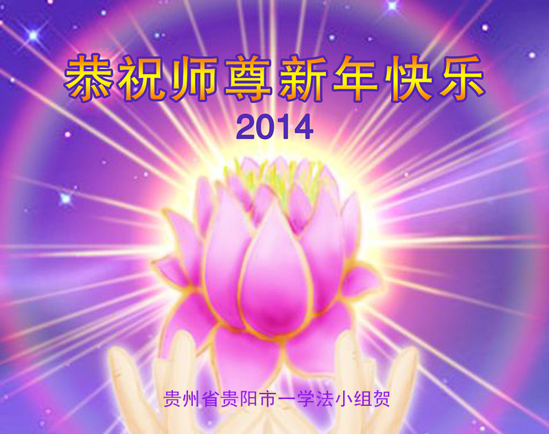 过去的一年,贵州大法弟子紧跟师父正法進程,在做好三件事中,每个真修弟子都在救人忙。谨记师父教誨,修好自己,努力完成好自己的历史重任,跟师父回家。在新的一年里,弟子们正念正行更上一层楼。让师父多一分欣慰,少一分操劳!在这元旦即将到来之际,贵州大法弟子敬向师父恭问一声辛苦了! 贵州省贵阳一大法弟子恭贺师尊新年好!