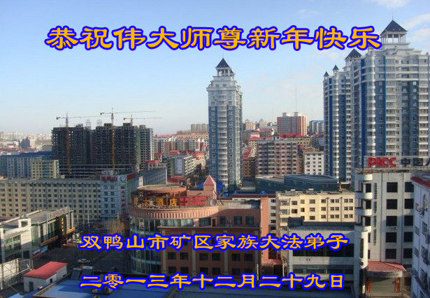 走过了二零一三年,新的一年又要到了。这是师尊为了成就大法弟子、为了众生得到救度,用尽人类语言无法形容的巨大承受延续来的时间,弟子向师尊问候:师尊,您辛苦了! 过去的一年中,在师尊的呵护下,我们整体配合救度众生,趟出了自己的路。但是离法对我们的要求还相差甚远。我会在新的一年里多学法,向内找,溶入整体,攥成拳头多救人,完成师尊赋予弟子的使命。 在七台河工作的佳木斯大法弟子 2013年12月15日 黑龙江省佳木斯大法弟子恭祝慈悲伟大师尊新年快乐!