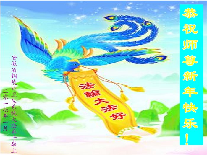 | 【明慧网二零一七年一月二十七日】2017年中国传统新年来临,工作和学习在40多个行业的大法弟子给尊敬的李洪志师尊发来贺词,感恩师尊的慈悲呵护和救度。 明慧网收到来自航天、兵工、检察、教育、金融、医药卫生、电信、通信、卫生、石油、气象、交通、新闻、政法、农垦、畜牧业、林业、矿业、铁路、电力、环卫、供销社、税务、水利、政府机关、法律界、商业界、音乐界、艺术界,还有银行业、保险业、公共交通业、出租车行业、建筑业、美容、家政、服务行业、出版发行、维修、运输、个体经营、会计、军队等,40多个行业和部门的大法弟子的贺词,感恩之情,溢于言表。法轮大法由李洪志师尊传世二十五年,修炼者近亿人,虽经中共江氏集团打压迫害十七年,大法弟子们在艰辛的环境中,在大法的引领下,越来越修炼的成熟、坚定、纯净。 大陆注册会计师、评估师行业大法弟子说:“师父您为了挽救苍宇众生于坏灭之际,您辛苦了!弟子们非常想念您!弟子们在师父慈悲的呵护中走过了看似崎岖却有惊无险的一年。弟子们一定利用各种环境讲清真相,精進实修。” 北京顺义、怀柔大法弟子说:“我们来自不同的职业,我们有着不同的年龄,我们有着共同的信仰,我们恪守共同的信念──坚修法轮大法到底,跟师尊回家,不论前面还有多远的路程。” 全国技工教育系统大法弟子及明真相的世人恭祝师尊新年快乐!谢谢师尊慈悲苦度!弟子唯有精進再精進,修好自己、跟上正法進程,去掉求安逸、麻木、怠慢之心,抓紧时间、兑现誓约多救人。 大陆法律界大法弟子恭祝师尊丁酉年新年快乐!拜大年 谢师尊 不辱使命 再精進 大陆法律界大法弟子跪拜 航天部部份大法弟子:“以法为师平稳的做着三件事”在即将到来的丁酉年之际,我们恭祝伟大慈悲的师尊新年好! 在中共恶党这十七年的迫害中,我地区的大法弟子在师尊的呵护下,正念正行的做着三件事,助师正法。无论邪恶怎么迫害,我们多以法为师平稳的做着三件事。在新的一年里,我们要更多的救人,让师尊少操心。我们千言万语无法表达对师尊感恩之心。 恭祝师尊新年好! 弟子叩拜师尊! 航天部部份大法弟子跪拜 安徽安庆检察系统大法弟子:“千言万语化精進,救度众生随师还”安徽安庆检察系统大法弟子恭祝师父新年好! 安庆检察系统大法弟子恭祝师父:新年快乐! 千言万语化精進,救度众生随师还。 唐山教育系统大法弟子:“弟子也替得救的教师与学生们谢谢师父!”唐山教育系统大法弟子恭祝师父新春快乐! 作为教育系统的大法弟子,在大陆现代科学充斥各个领域、无神论、進化论和对大法欺世谎言的毒害、对大法弟子残酷的迫害的环境中,深知师父救度众生的艰难,弟子肩负助师正法的重担。感恩师父! 回首过去的一年,师父为了不落下一个弟子,救度更多的迷中众生,用怎样的承受拖延着时间,化解了宇宙中一个又一个旧势力已定好的劫难。作为弟子深深知道,要不是师父传宇宙大法,就没有我们和世人的今天。 弟子们的点滴進步都浸透着师父的慈悲与辛苦,作为大陆教育系统的弟子,虽看不到师父,但师父的话儿在心里牢牢记住。我们时时能感受到师父的慈悲看护,在修炼的路上,跌倒了是师父把我们扶,慈祥的指出我们的不足;微笑的鼓励着我们走好以后的路。作为弟子,我们紧随师父,我们要学师父对众生的态度,把世人都当作亲人,甘愿付,出多多救度!弟子也替得救的教师与学生们谢谢师父!再一次问候师父:师父过年好!谢谢师父把我们救度! 中国兵装集团重庆一学法小组全体大法弟子恭祝师尊新年好!学法小组全体大法弟子给师尊拜年了,恭祝师尊新年快乐!我们要抓紧时间努力做好师父要求的三件事,让师父少一份操劳、多一份欣慰。 河北华北油田大法弟子:“忍苦不懈,多救人”河北华北油田大法弟子恭祝师父新春快乐! 在新年来临之际,弟子们一定以法为师,精進实修,形成金刚不破之整体,忍苦不懈,多救人,兑现誓约,不负使命。 工业和信息化部南京第十四研究所全体大法弟子:“辗转轮回数千载 得法圆满返天台”中国工业和信息化部南京第十四研究所全体大法弟子恭贺师尊新年好! 鹤立鸡群尘世外 寒梅熬霜香飘外 辗转轮回数千载 得法圆满返天台 黑龙江省教育系统全体大法弟子恭祝慈悲伟大的师尊新年快乐!茫茫红尘迷失本性 苦海轮回一梦不醒 浑浑噩噩中我们猛然惊醒 是慈悲伟大的师尊将法轮大法的真善忍 植入了我们黑暗的心灵 唤醒了我们迷失的本性 使我们又重新见到了人生道路上的光明前景 告别了那红尘险恶的狰狞 走向了那无限光明的纯净 找到了我们迷失已久的本性 对人生又充满了美好憧憬 我们发现 我们曾经在人生的道路上为了自己的功名 在我们的心灵上不知不觉的蒙上了多少阴影 我们发现 我们曾经在追求情欲中为了自己的得失 在不知不觉中又迷失了多少本性 然而今天我们才如梦方醒 是慈悲伟大的师尊洪传的法轮大法洗净了我们污浊不堪的心灵 告别了那争争斗斗的险境 走出了那勾心斗角的陷阱 在修炼法轮大法中 我们一步一步的找回了迷失的本性 在救度众生中 我们一步一步走向了那无私无我的美好仙境 新年之际感恩之心化飞鸿 我们隔洋叩拜——师尊新年快乐! 山西大同兵工系统大法弟子全家恭祝慈悲伟大的师尊过年好!恭祝慈悲伟大的师尊过年好
