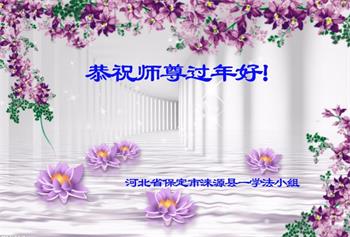 我们自从走入大法,就溶入师父您所给予的正能量场之中,使我们的心、身都得到康复,重见光明,万物生机勃勃。我们都感恩师尊的慈悲救度与保护!我们继续做好三件事,早日兑现誓约,跟师尊回家。叩拜师尊! 河北省保定市涞源县城一学法小组大法弟子恭祝师尊过年好!