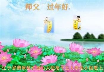 辽宁省抚顺市清原县红透山镇一学法小组大法弟子五人恭祝师父过年好!