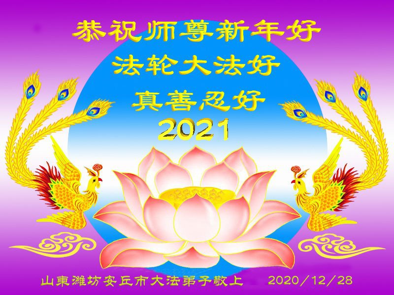【明慧网二零二零年十二月二十九日】 山东潍坊临朐一老年女大法弟子恭祝慈悲伟大的师尊新年好!