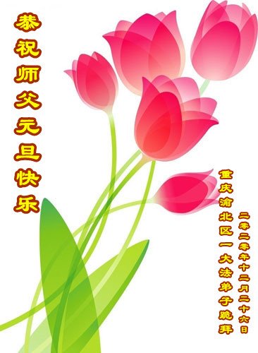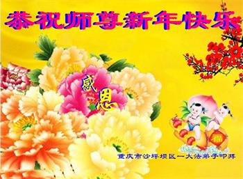 重庆市渝北区一大法弟子及全家恭祝慈悲伟大的师尊新年快乐! 重庆市渝北区一大法弟子及全家敬上 重庆市沙坪坝区一老年大法弟子恭祝慈悲伟大的师尊新年快乐!