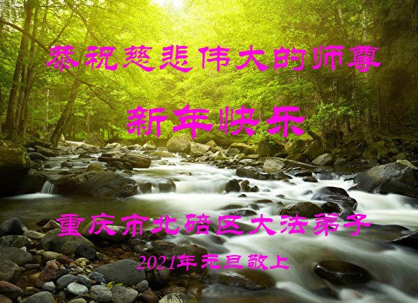 重庆市渝北区一大法弟子恭祝慈悲伟大的师父元旦快乐!师恩永驻!
